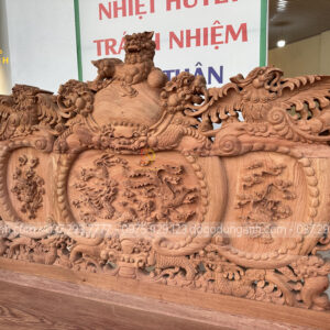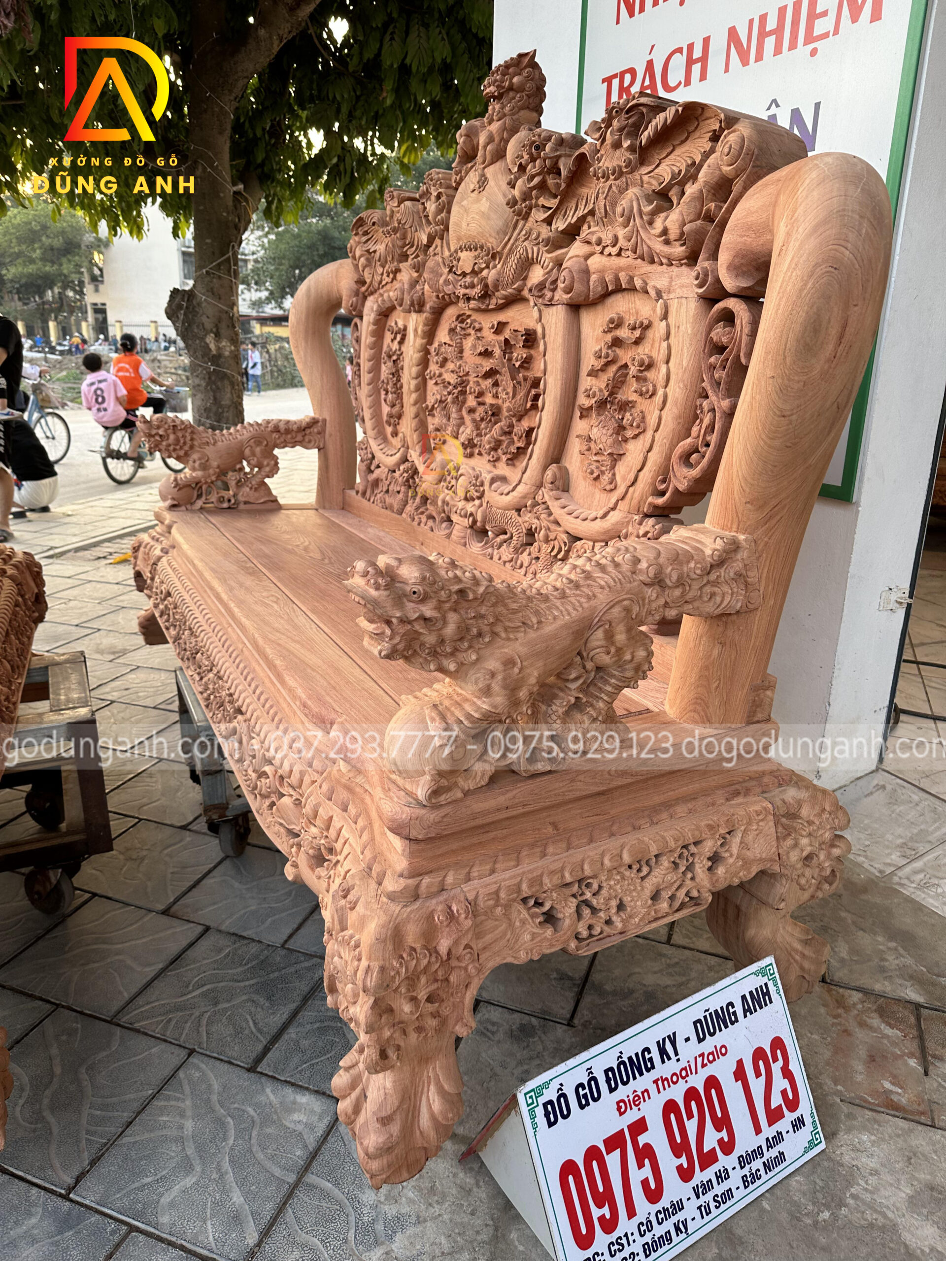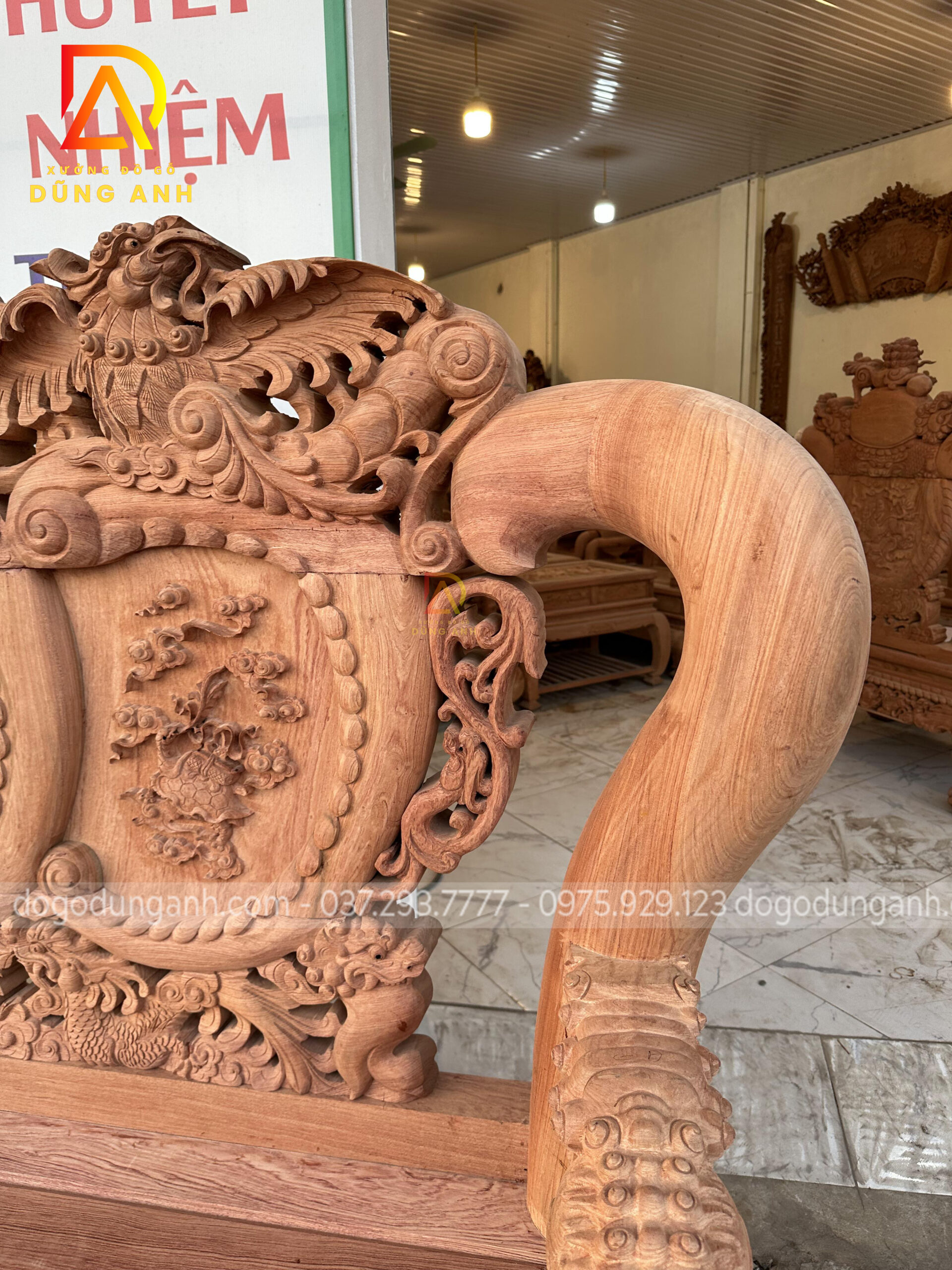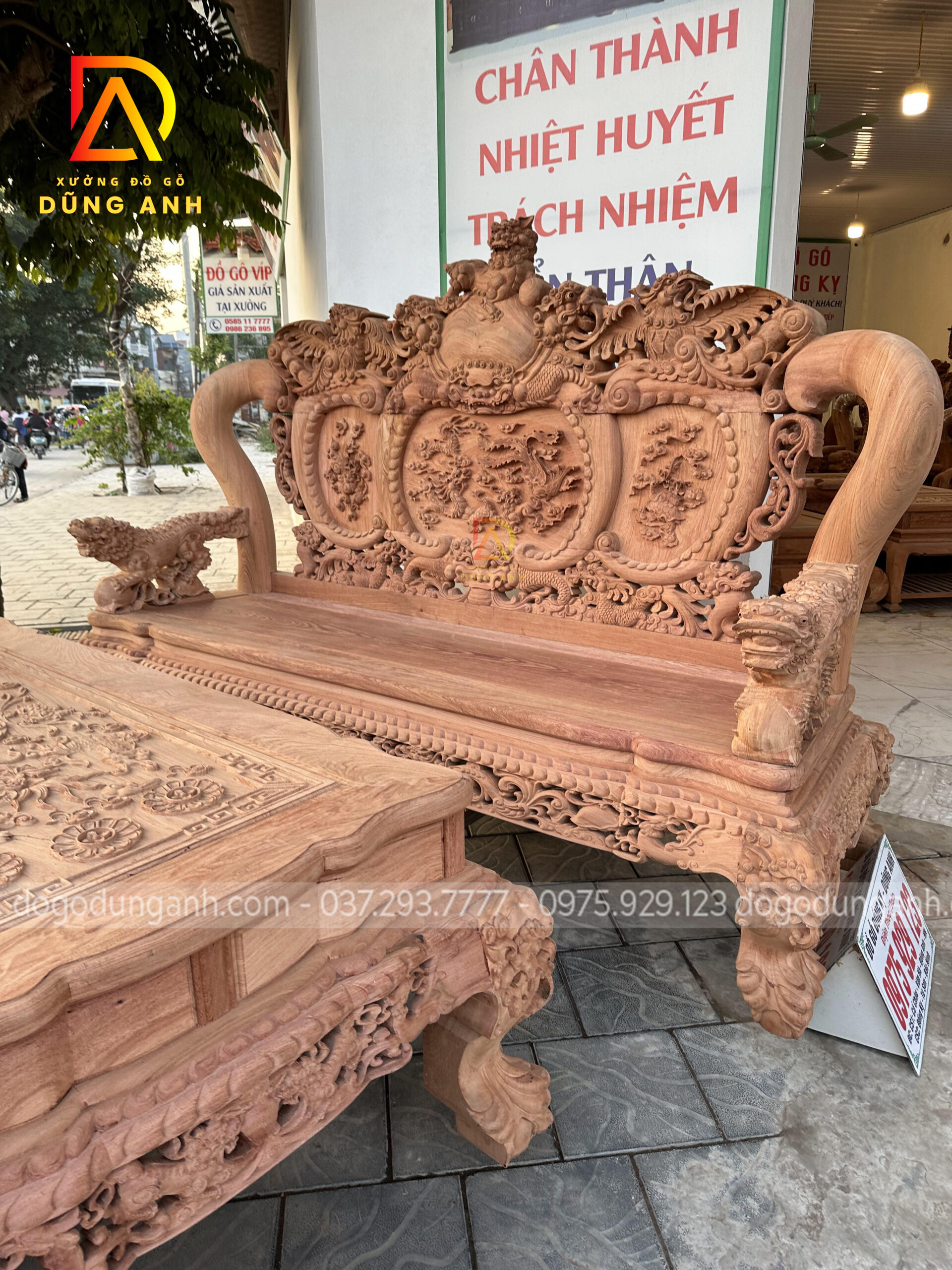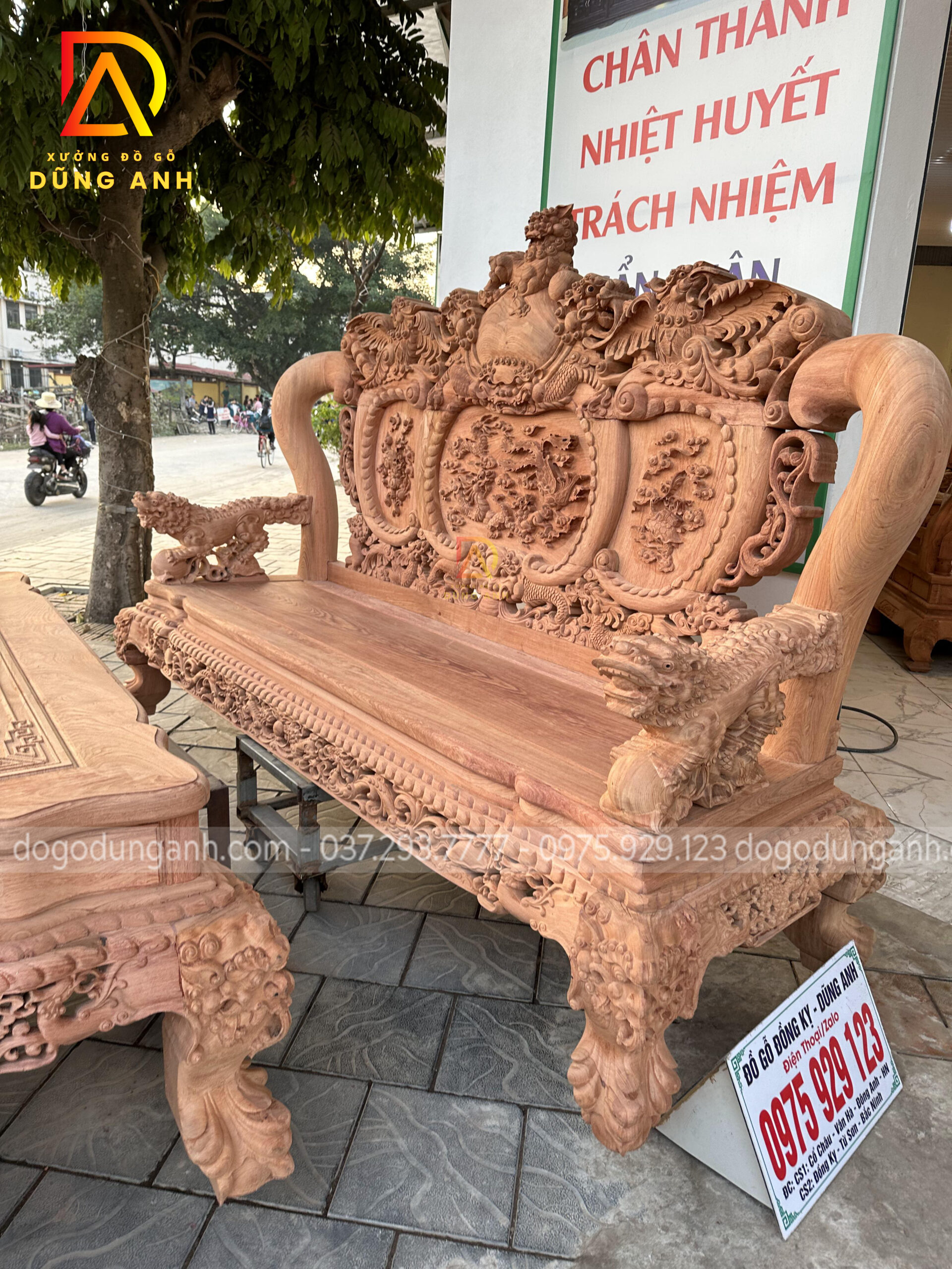 Bộ bàn ghế anh Bắc chọn thuộc mẫu minh quốc nghê bảo đỉnh đặt theo yêu cầu tay 15 hàng đại từ chất liệu gỗ hương đá cao cấp gồm 6 món với kích thước hoành tráng và nổi bật. Đã được xưởng Đồ Gỗ Dũng Anh sản xuất nhanh chóng và đang đợi phun sơn hoàn thiện để có thể về với không gian phòng khách nhà anh Bắc tại Hải Phòng.