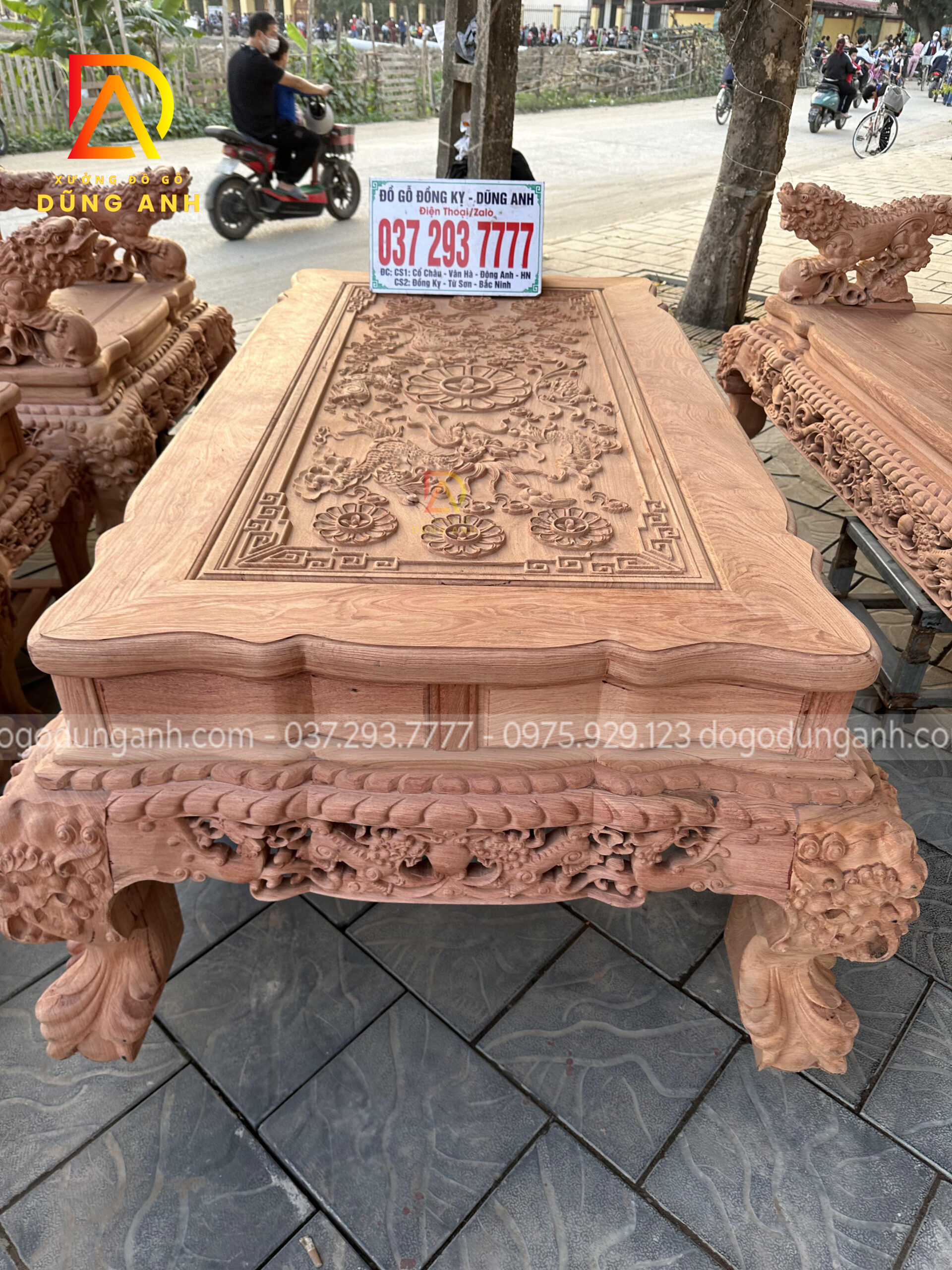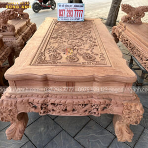 - Bàn dài 220cm, rộng 130cm, ván bàn 3cm mặt bàn liền 1 tấm Đục trạm bằng tay