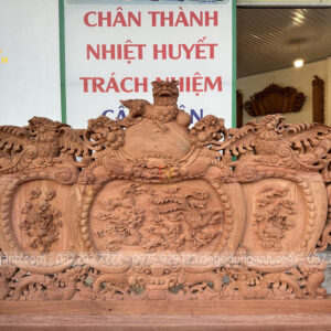 Ghế đơn nổi bật với các họa tiết đục chạm kỹ lương hình tượng nghê phong thủy – Phần đỉnh chương đục nghê bảo đỉnh ba đầu – Vách đục tam sư vờn cầu – Tay đặc đục nghê chi tiết sống động như thật.