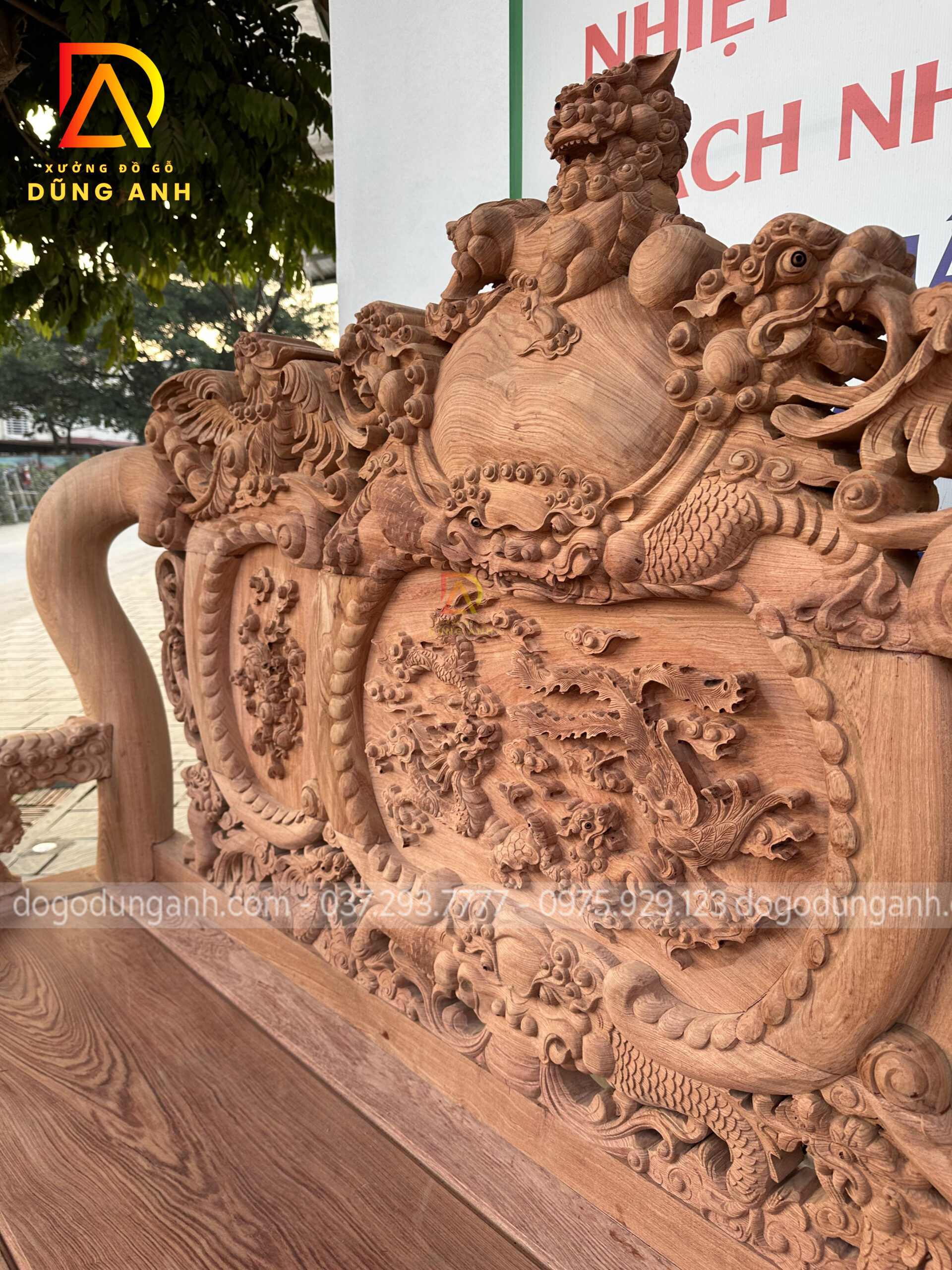 Anh Bắc quả là một người có gu thẩm mỹ tính tế và độ chịu chơi khi sẵn sàng chi số tiền khủng đặt bộ bàn ghế kích thước lớn hàng đại từ chất gỗ quý hiếm lại được đục 2 mặt chi tiết giúp mang lại vẻ đẹp hoàn hảo từ mọi góc nhìn. Và đây cũng là yếu tố giúp người nhìn dễ dàng phân biệt giữa dòng hàng cao cấp với hàng chợ phổ thông.