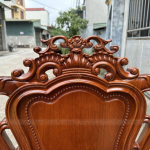 - Phần Chương ghế Liền Nguyên Khối được đục chính giữa là bông hoa hồng xung quanh là họa tiết hoa lá tây vô cùng sắc nét phía dưới