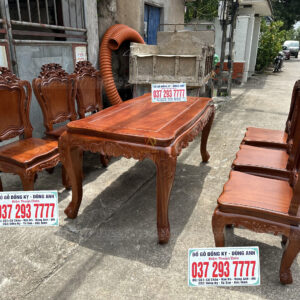 Hàng Vip Bộ 6 ghế Louis Hoàng Gia + Bàn Củ Lạc – gỗ Gõ Đỏ