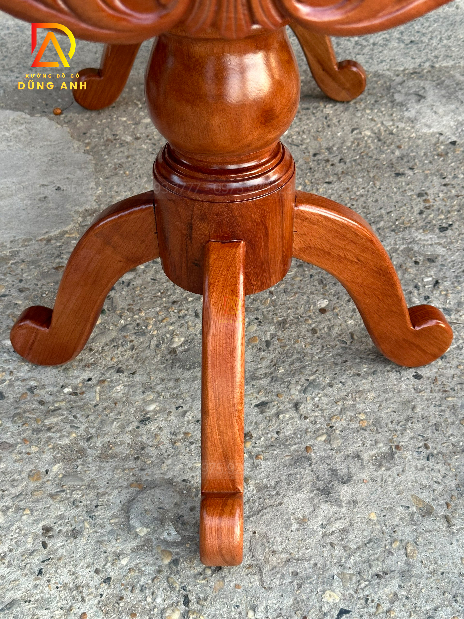 - Chân trụ đặc liền Nguyên Khối có kích thước bản vuông là 16 cm và được tiện tròn thủ công hoàn toàn bằng tay