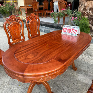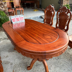 Mẫu 6 Ghế Louis Hoàng Gia Hoa Hồng + Bàn Bầu Dục – Gõ Đỏ