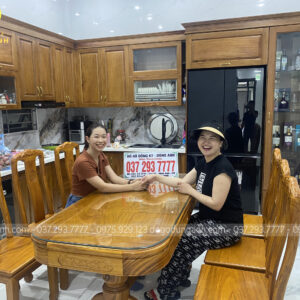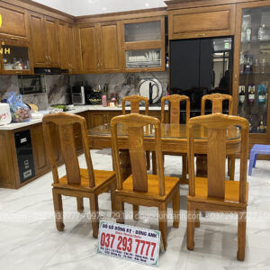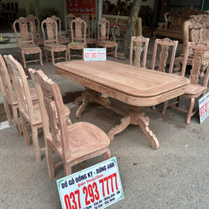 Trình làng SIÊU PHẨM 6 ghế hiện đại kết hợp với bàn tròn NGUYÊN KHỐI chất liệu gỗ gõ đỏ vân siêu đẹp