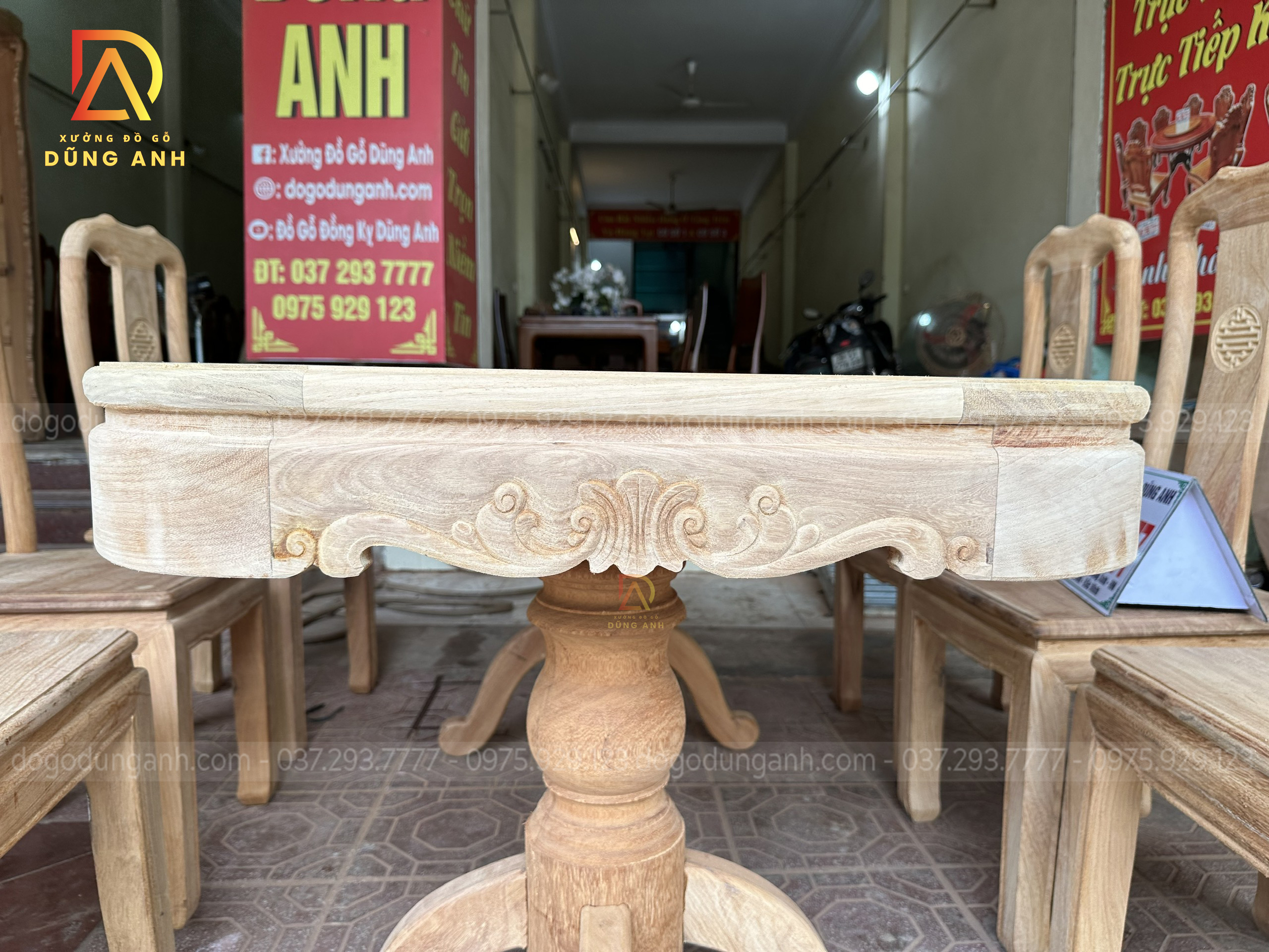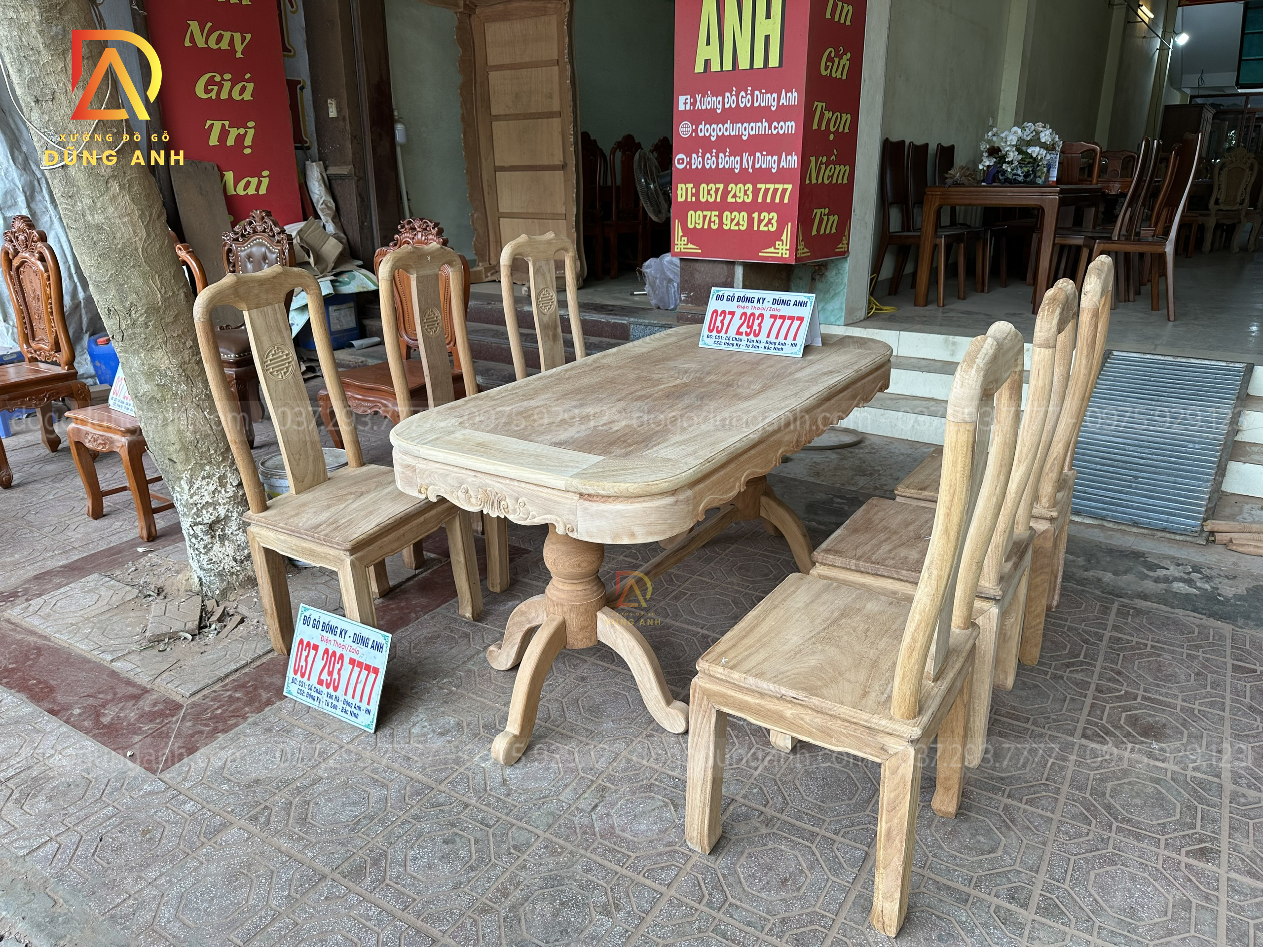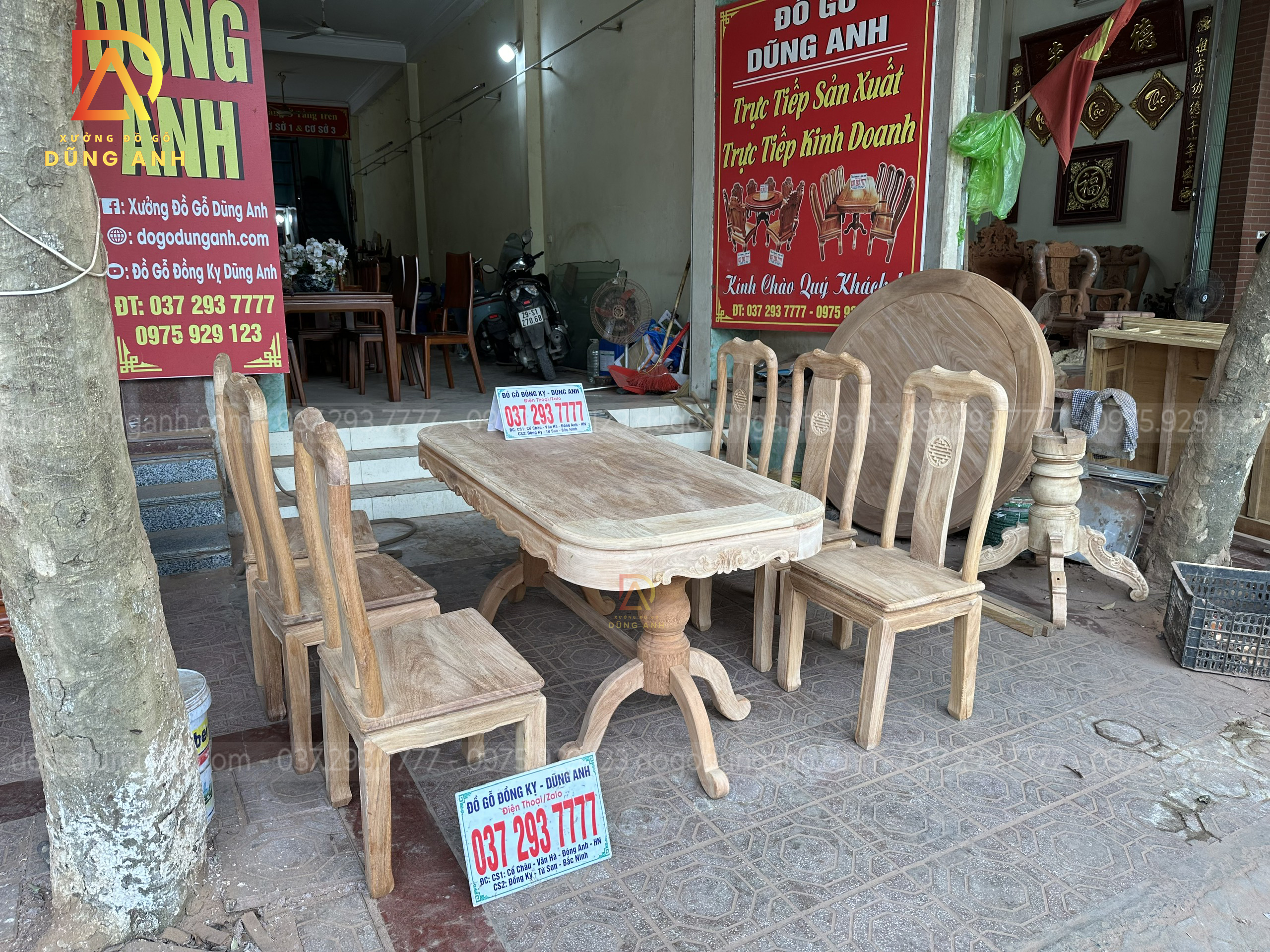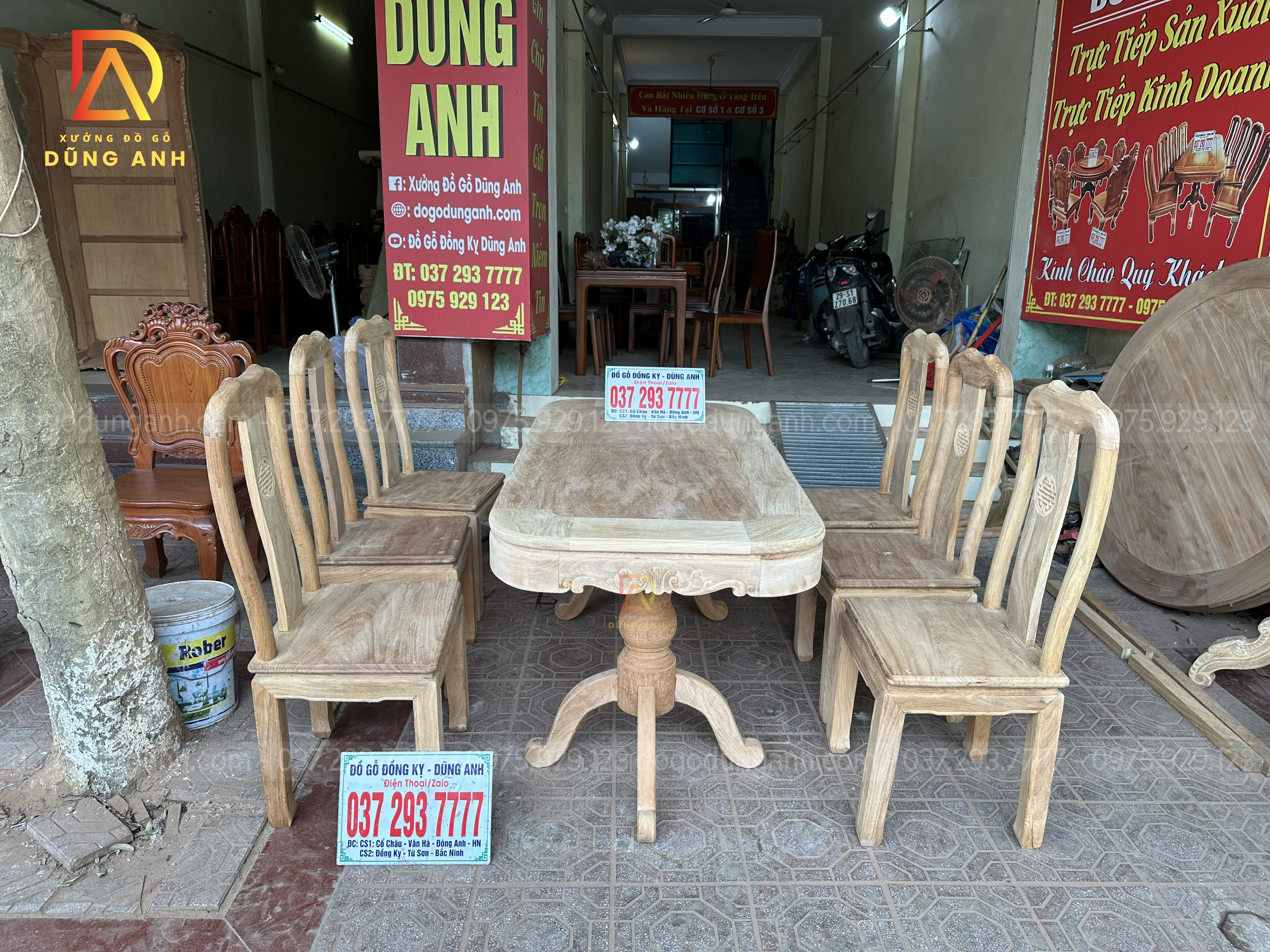 Quý khách có thể tham khảo thêm các mẫu bàn ghế ăn đẹp, bàn ghế ăn nguyên khối, các mẫu ghế ăn đẹp thì có thể liên hệ ngay với Xưởng đồ gỗ Dũng Anh qua: