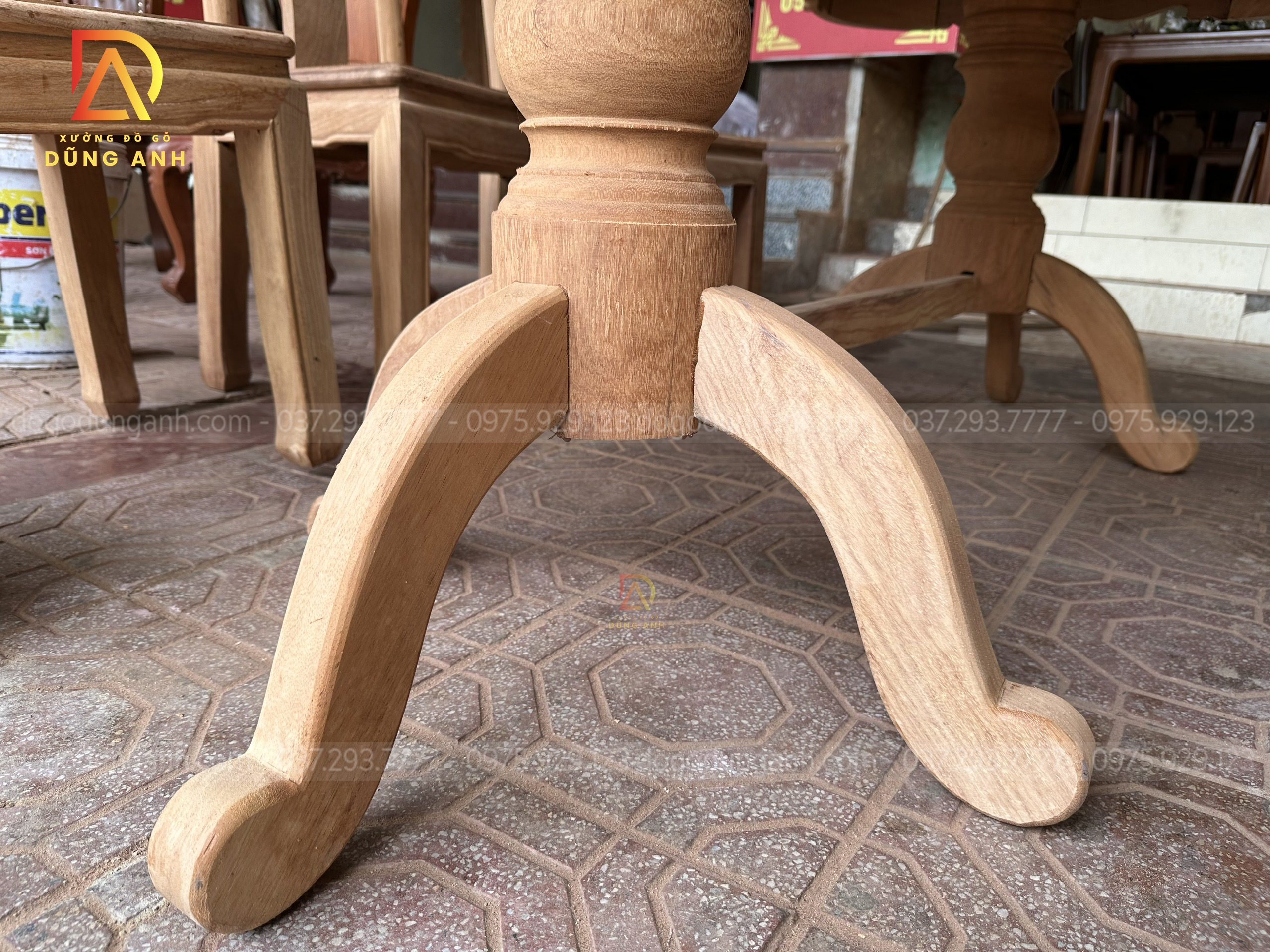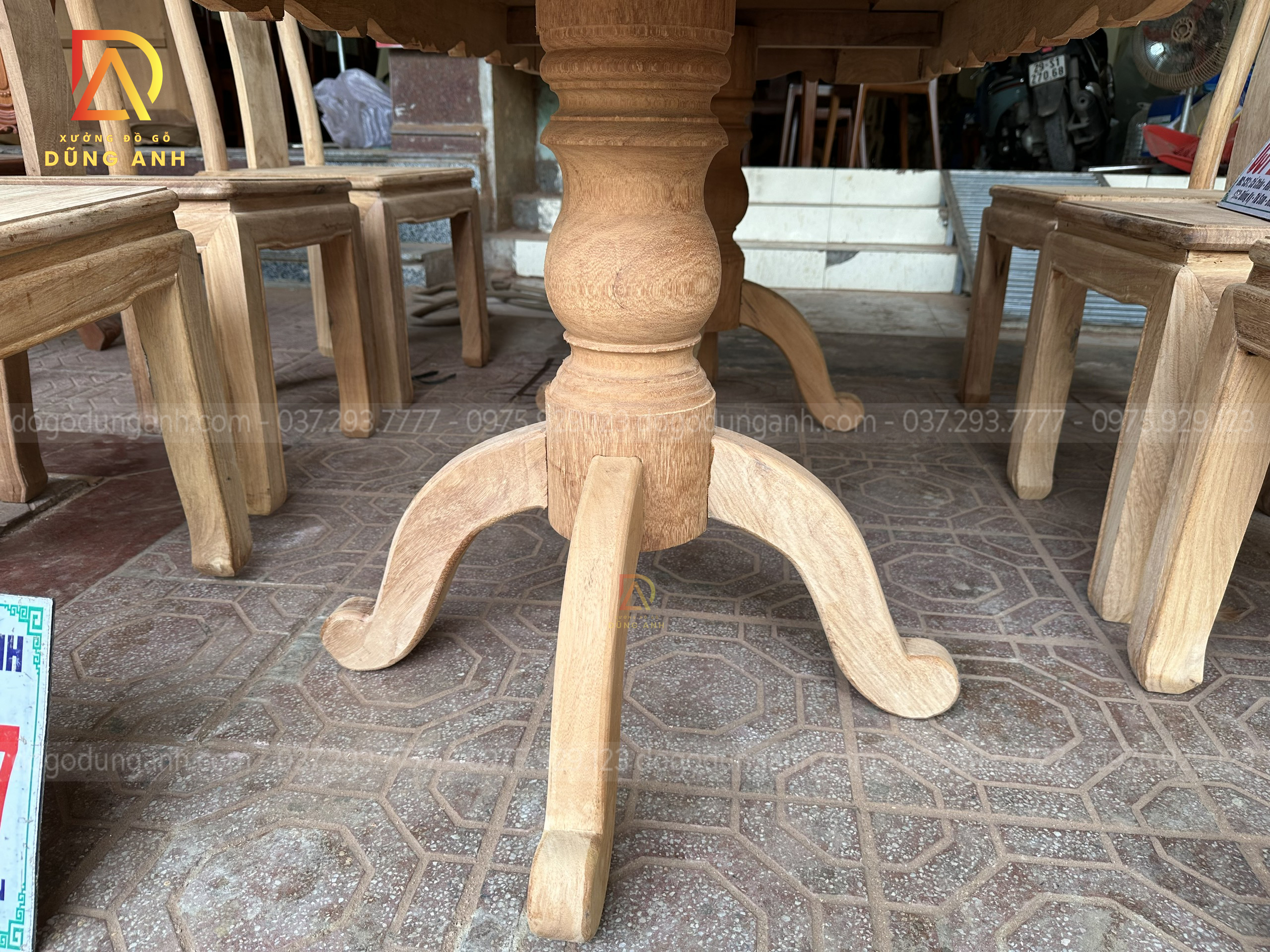 - Xung quang chiếc chân trụ có 3 chiếc chân chó tạo thêm phần vững chắc hơn cho chiếc bàn cũng như tạo nên một nét đẹp riêng của phần chân trụ hơn