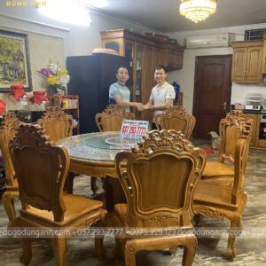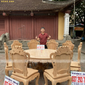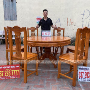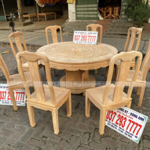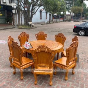 Trình làng SIÊU PHẨM 6 ghế hiện đại kết hợp với bàn tròn NGUYÊN KHỐI chất liệu gỗ gõ đỏ vân siêu đẹp
