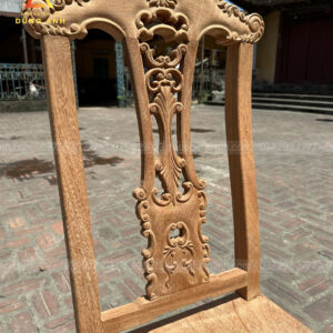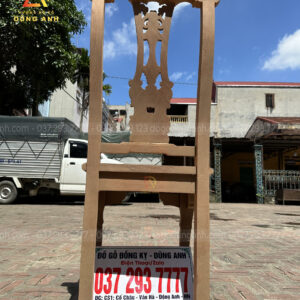 - Mẫu ghế Cờ Bạc chiều cao tổng thể là 110 cm, chương liền dày 4cm, rộng 12cm chương đục tỉa hoa lá tây, cong đều, sắc nét, phần vách tựa đục quân cờ