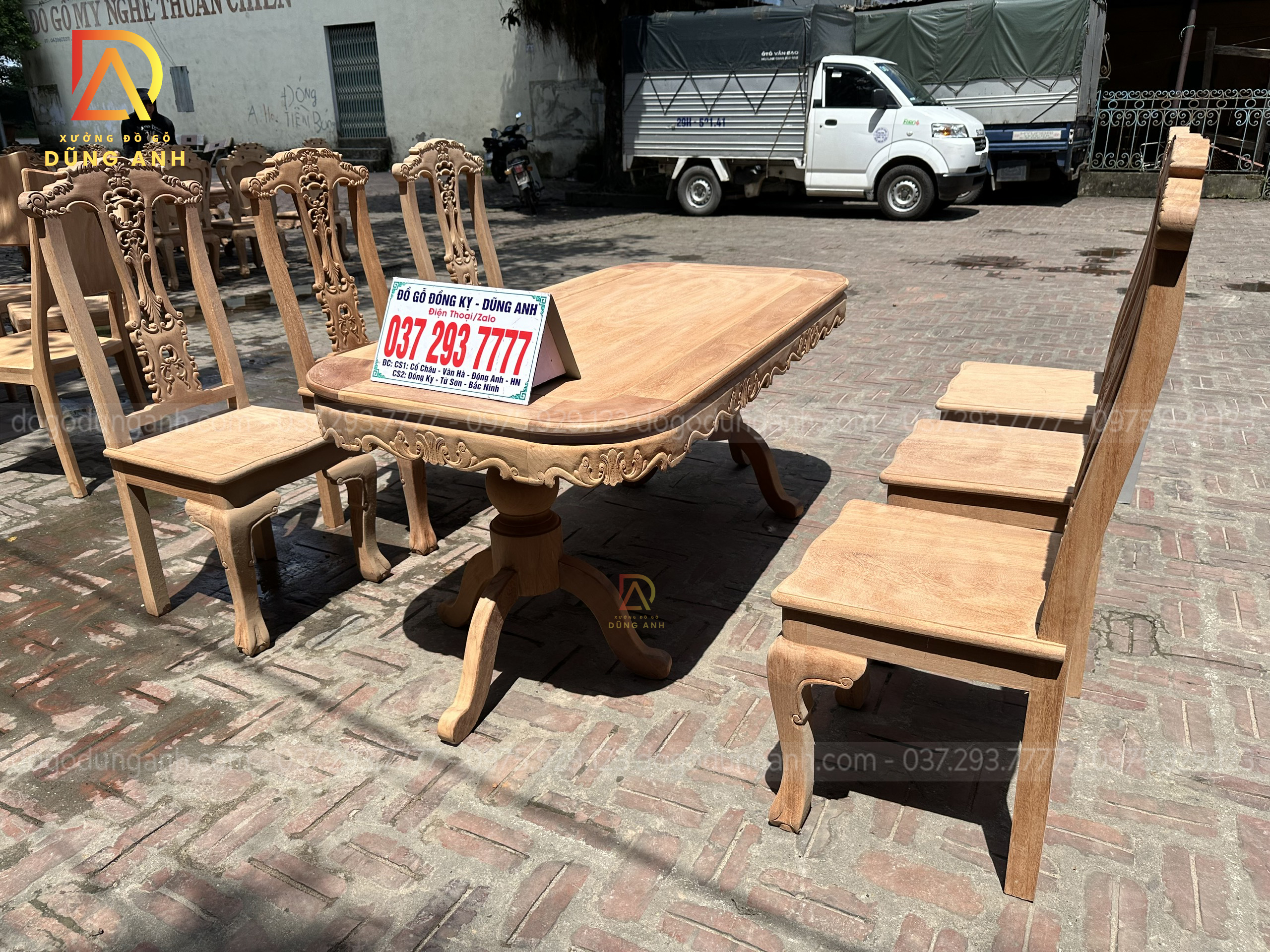 Quý khách có thể tham khảo thêm các mẫu bàn ghế ăn đẹp, bàn ghế ăn nguyên khối, các mẫu ghế ăn đẹp thì có thể liên hệ ngay với Xưởng đồ gỗ Dũng Anh qua: