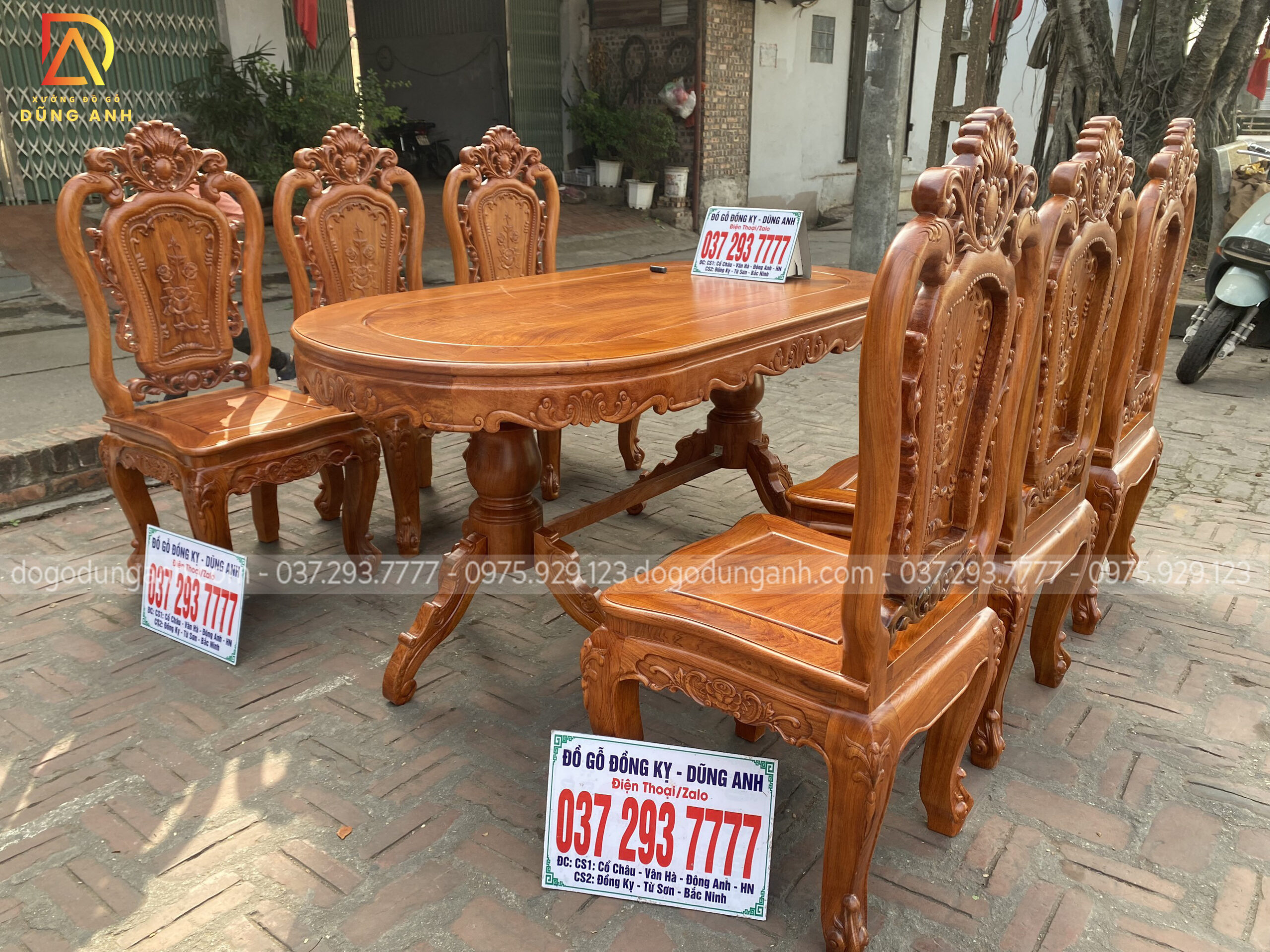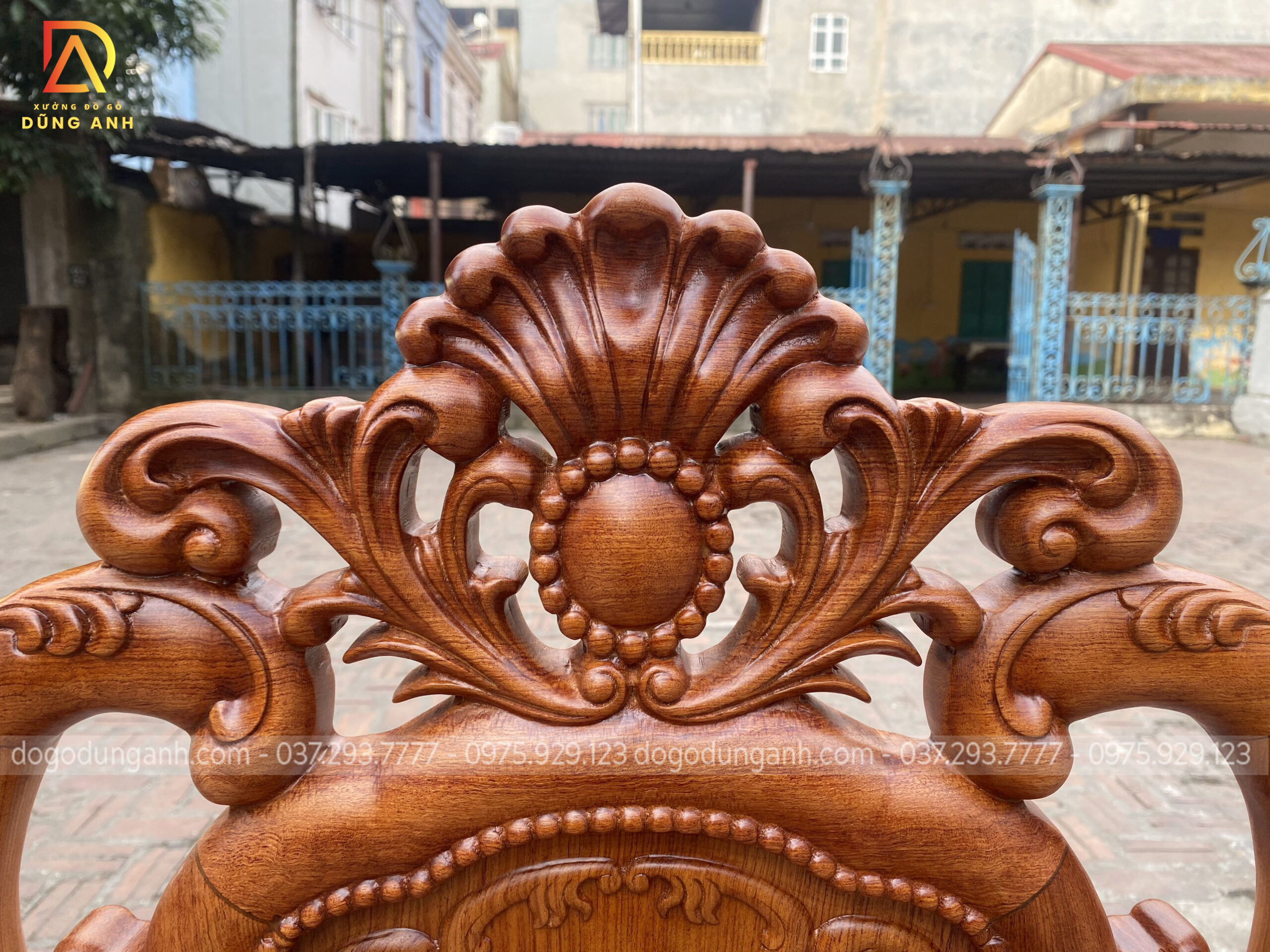 Mẫu ghế Louis Hoa Hồng đục trạm 2 mặt tinh xảo kết hợp bàn bầu dục chất liệu Gỗ Hương Đá đẳng cấp