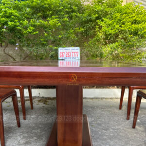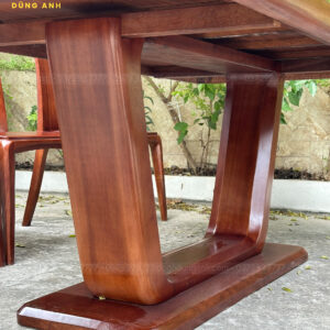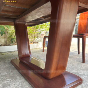 Mẫu hiện đại mới 6 ghế Quanh Khúc + Bàn chữ nhật trụ Thuyền – gỗ Gõ Đỏ