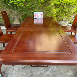 Gỗ gõ đỏ được biết đến là một trong những loại gỗ quý hiếm, nổi bật với màu sắc đỏ tự nhiên và vân gỗ đẹp mắt. Không chỉ mang lại vẻ đẹp thẩm mỹ, gỗ gõ đỏ còn có độ bền vượt trội, khả năng chống mối mọt và nấm mốc, đảm bảo sản phẩm luôn giữ được hình dáng và chất lượng theo thời gian. Sự chắc chắn và ổn định của gỗ gõ đỏ giúp bộ sản phẩm này trở thành lựa chọn lý tưởng cho những gia đình yêu thích sự bền bỉ và sang trọng.