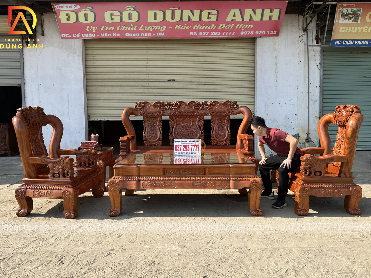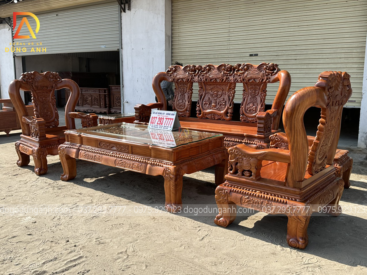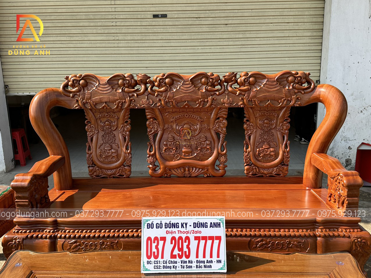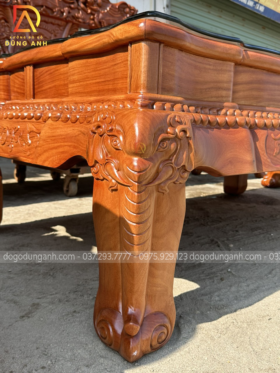 Bộ sản phẩm Xưởng đồ gỗ Dũng Anh bên em chế tác hoàn toàn từ 100% chất liệu gỗ gõ đỏ dòng gỗ cao cấp chất lượng với giá thành khá đắt đỏ. Được xưởng chọn lọc kỹ càng nên đảm bảo độ đanh chắc hoàn hảo để tạo nên các họa tiết đục tinh xảo, nổi bật theo phong cách louis hoàng gia tân cổ điển vô cùng sang trọng và bắt mắt.