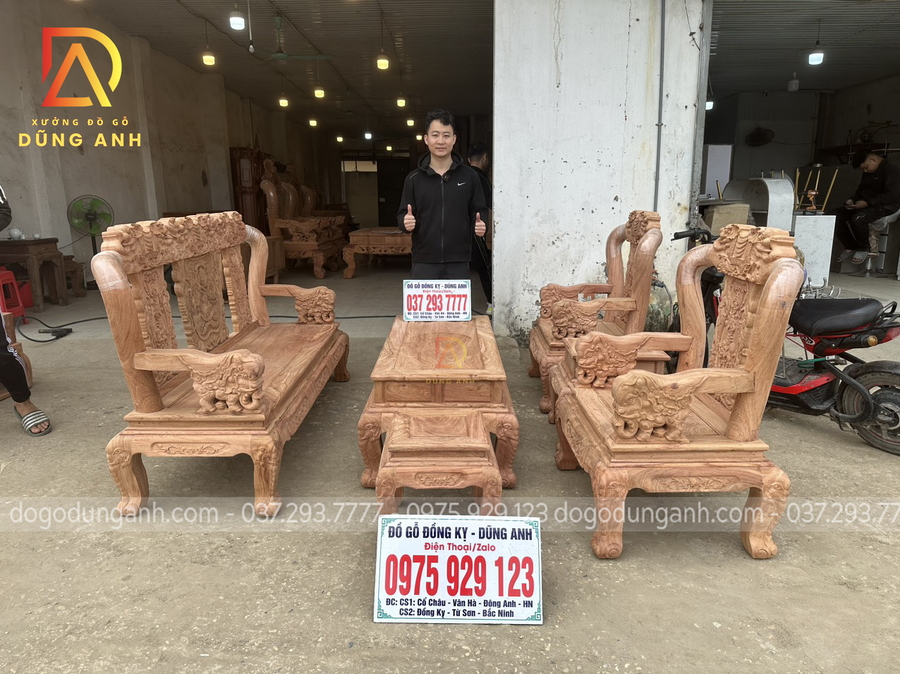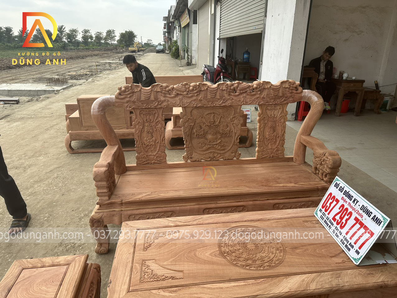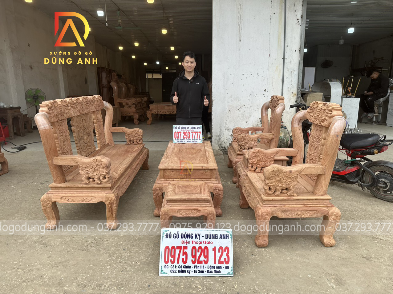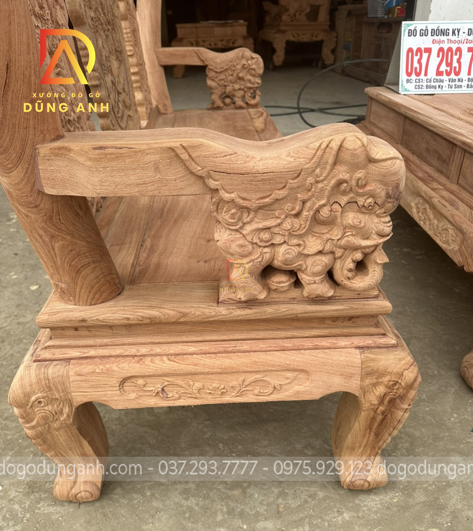 Tất cả các bộ bàn ghế gỗ hương đá tại xưởng gỗ Dũng Anh đều được chế tác hoàn toàn thủ công, do đó mà các chi tiết phong thủy như: con Nghê, các chi tiết Rồng, Phượng, con Công…. đều hiện lên vô cùng sống động và tinh xảo. Các chi tiết phong thủy ấy đều mang ý nghĩa cầu chúc cho gia chủ sự sung túc, sự an lành, tài lộc trong cuộc sống. Do đó mà các sản phẩm tại xưởng gỗ Dũng Anh luôn được rất nhiều khách hàng quan tâm và ưa chuộng.