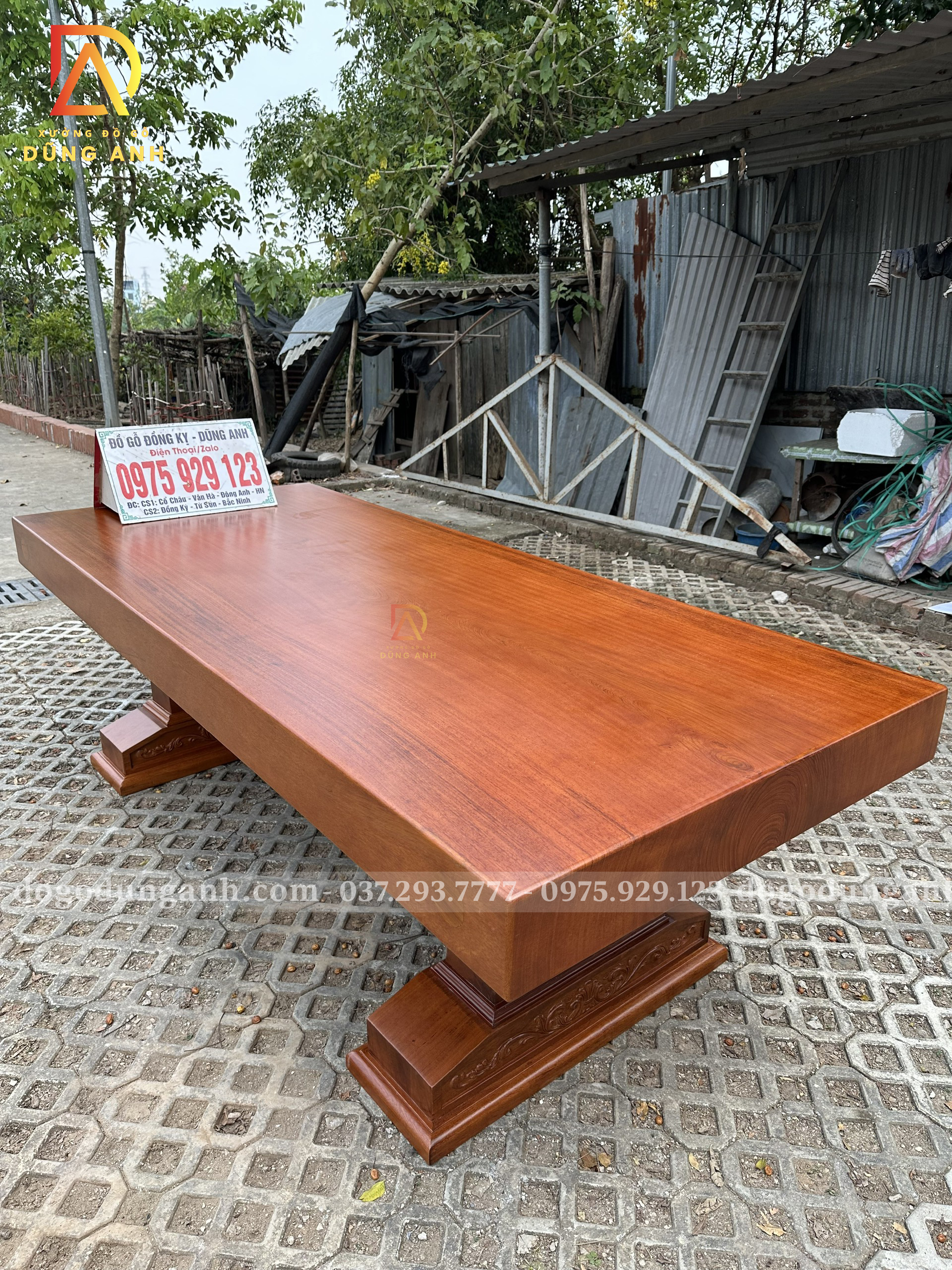 - Đặc biệt chân bàn cũng được làm Nguyên Khối , có độ dày là 15 cm, phần phủ bì có chiều dài là 95 cm và chiều rộng là 30 cm rất chắc chắn để đỡ được mặt bàn Nguyên Khối có kích thước khủng như vậy