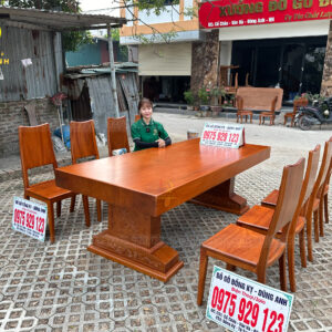 [ Nguyên Khối ] Bộ 8 Ghế Hiện Đại kết hơp Bàn Chữ Nhật – Gỗ Gõ Đỏ | Đồ Gỗ Đồng Kỵ Dũng Anh