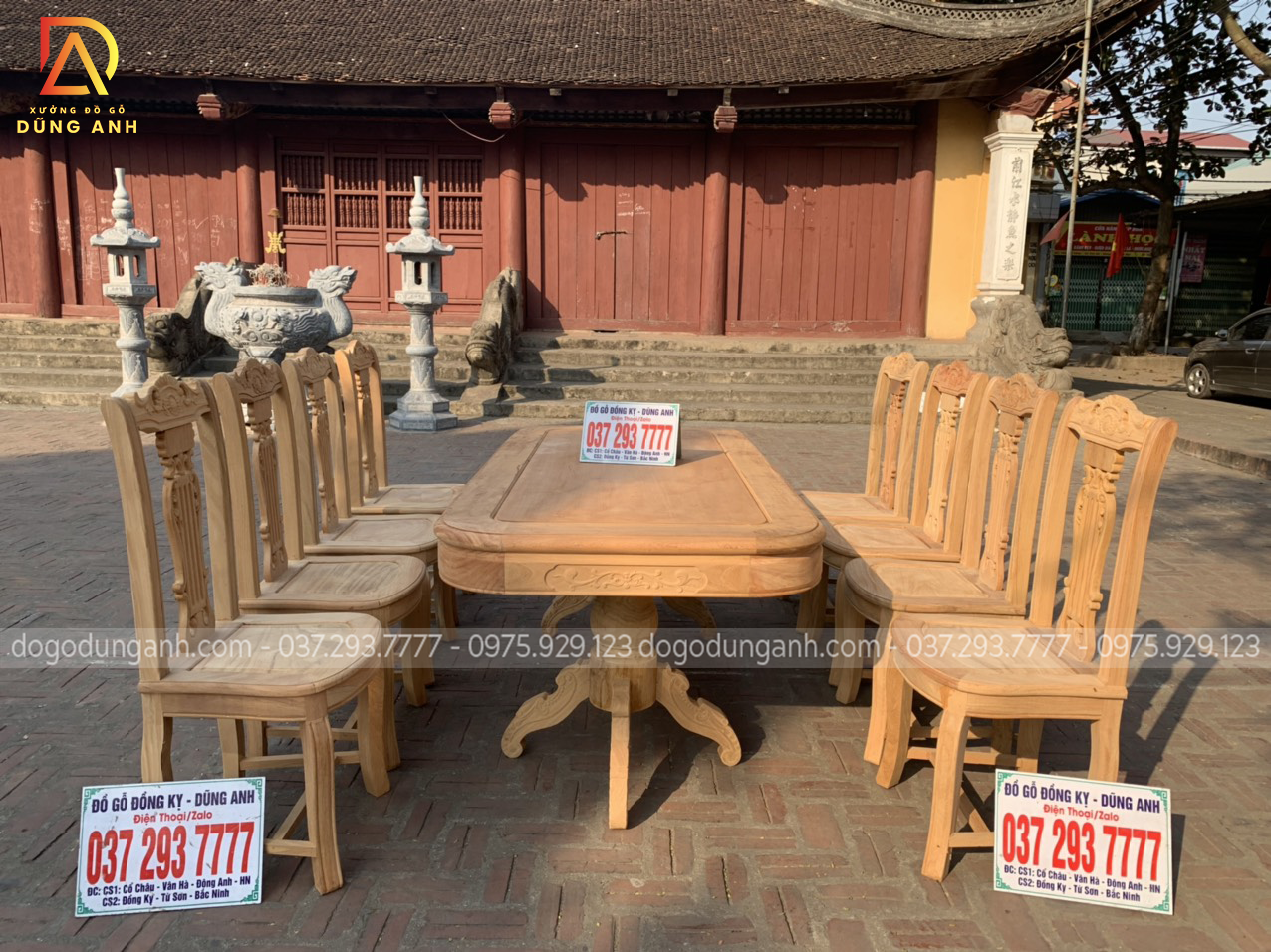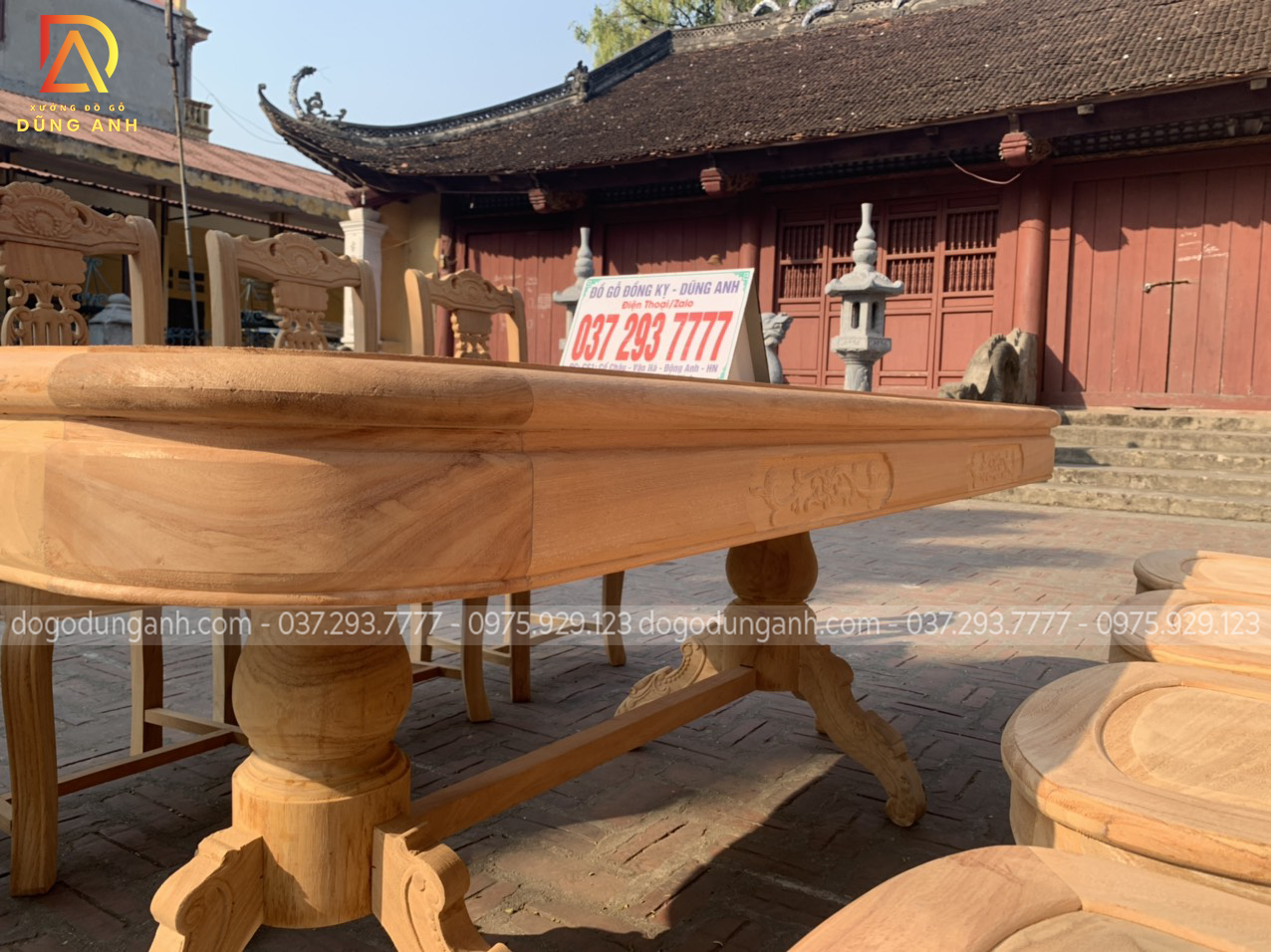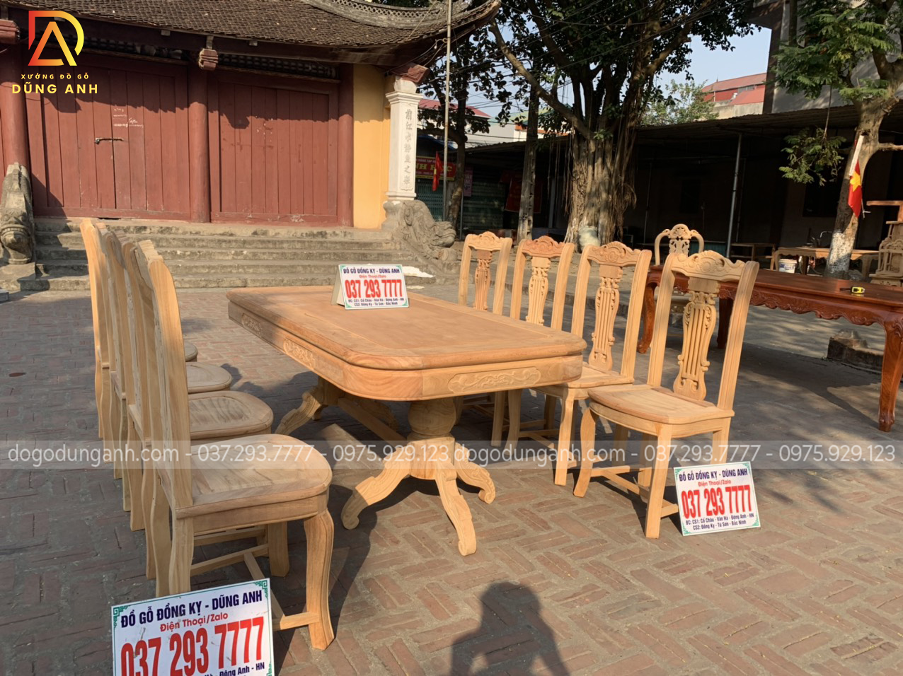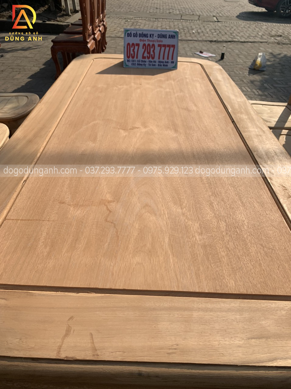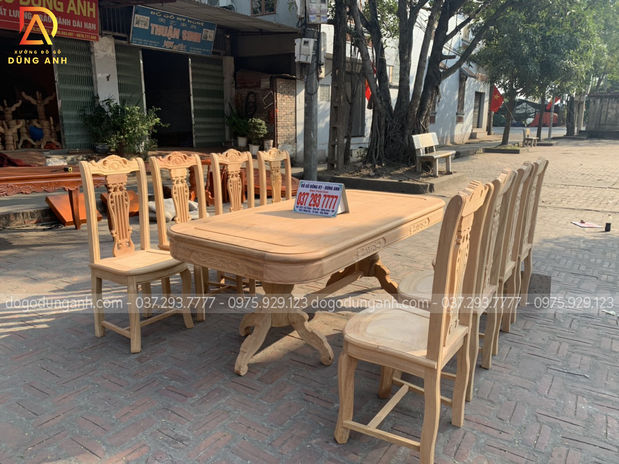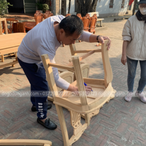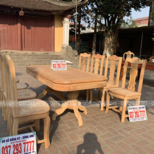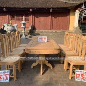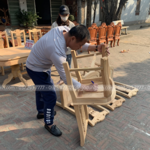 Nguyên mộc bộ bàn ăn 8 ghế mẫu cây đàn được anh Thắng (Thái Bình) về kí nháy trước khi hoàn thiện.