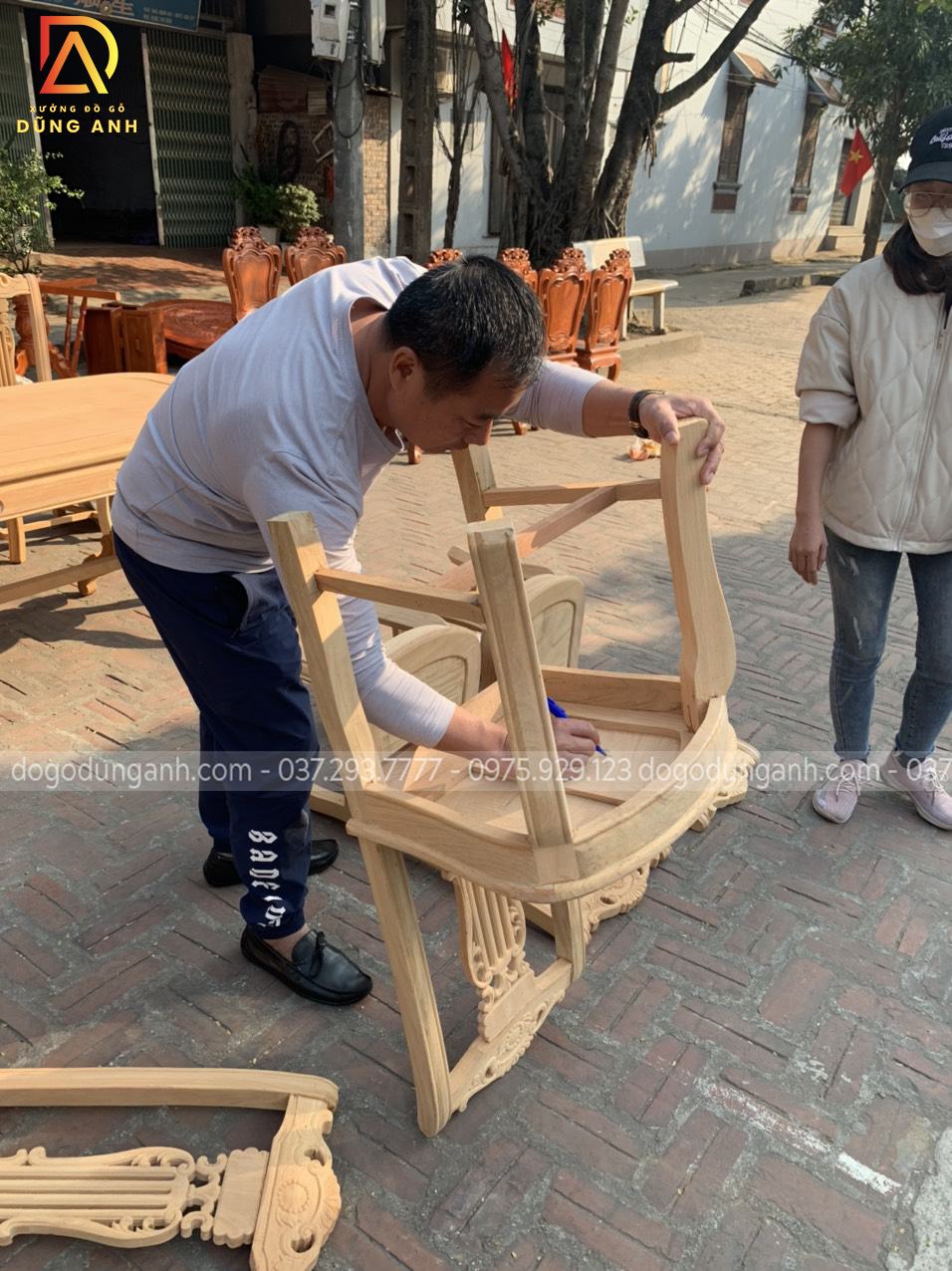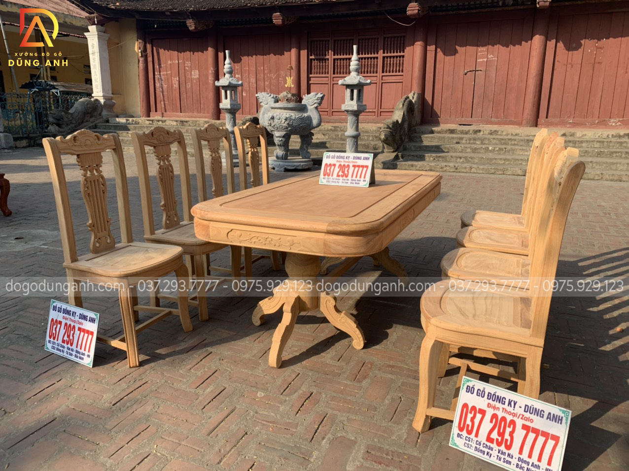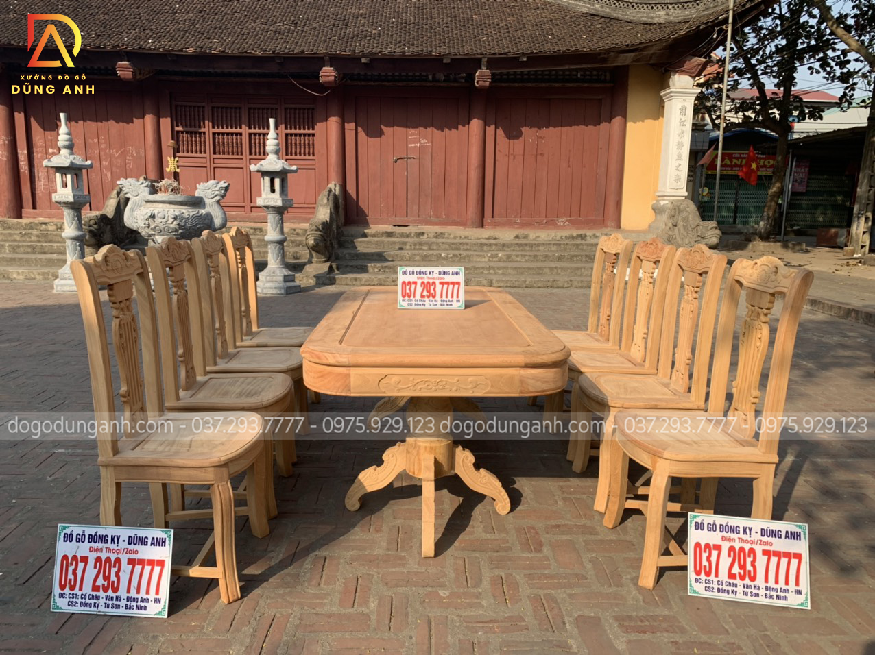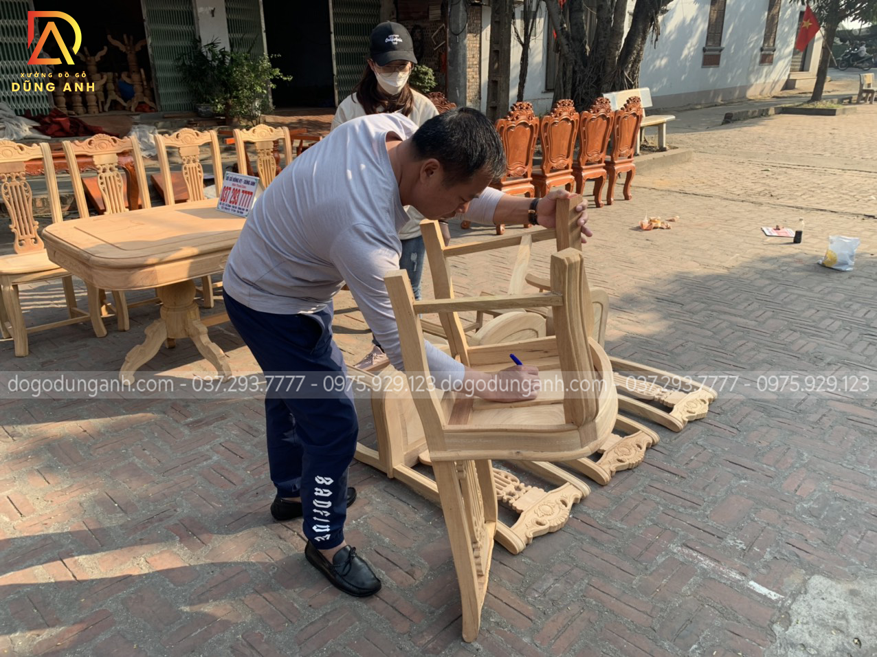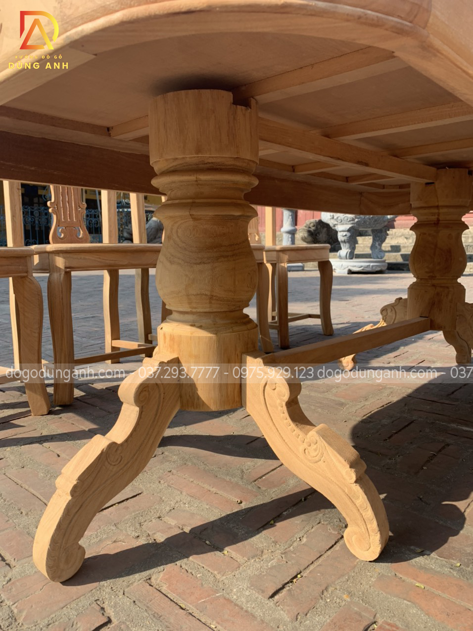 Nguyên mộc bộ bàn ăn 8 ghế mẫu cây đàn được anh Thắng (Thái Bình) về kí nháy trước khi hoàn thiện.