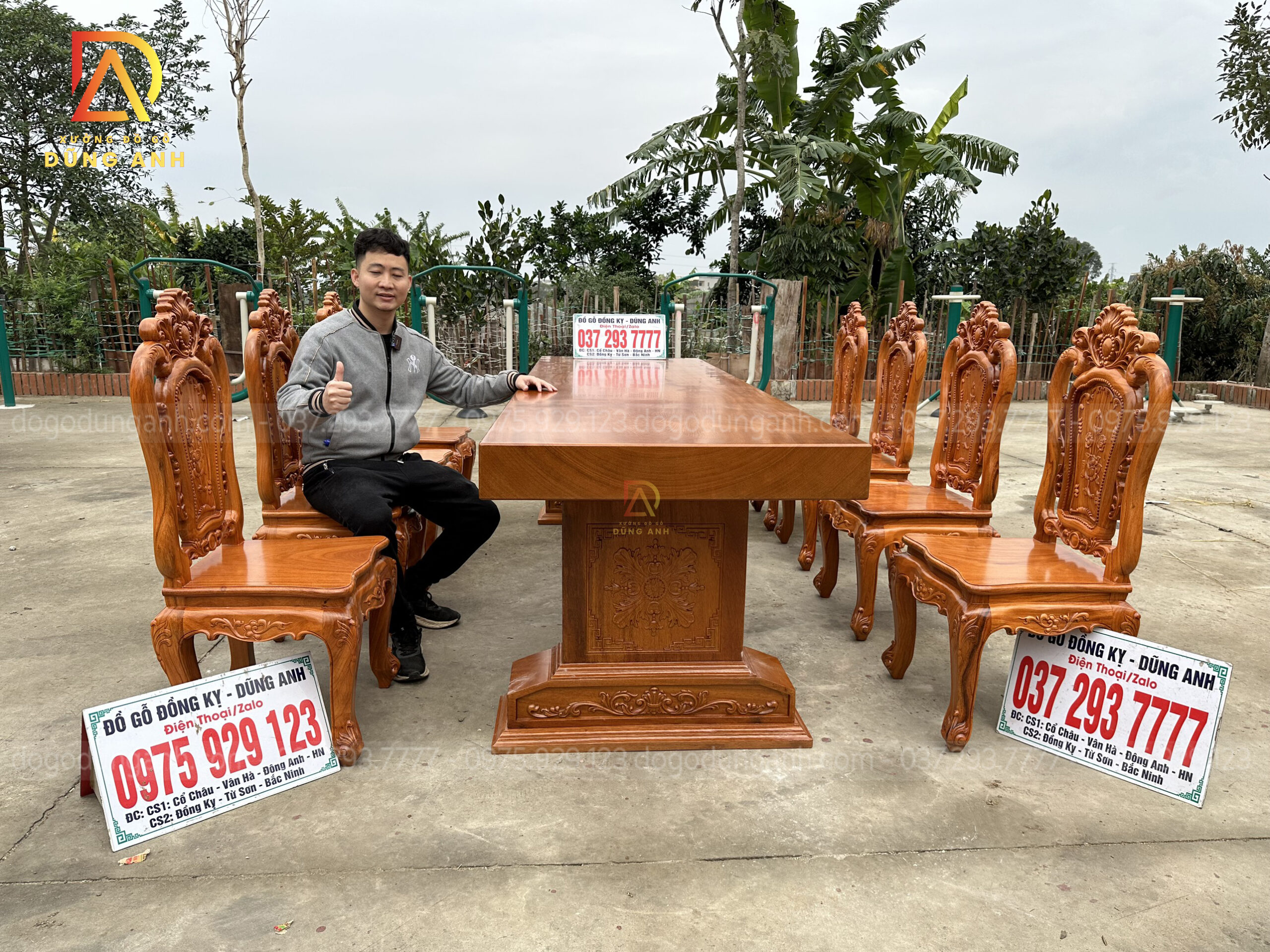 Sự kết hợp giữa bàn chữ nhật và tám ghế triện chữ Thọ, cùng với mặt bàn tràn liền tấm từ gỗ Hương Đá, tạo ra một không gian ăn với sự sang trọng và lịch lãm. Bộ sản phẩm này không chỉ là một điểm nhấn cho không gian sống của bạn, mà còn là một biểu tượng của sự tinh tế và đẳng cấp.