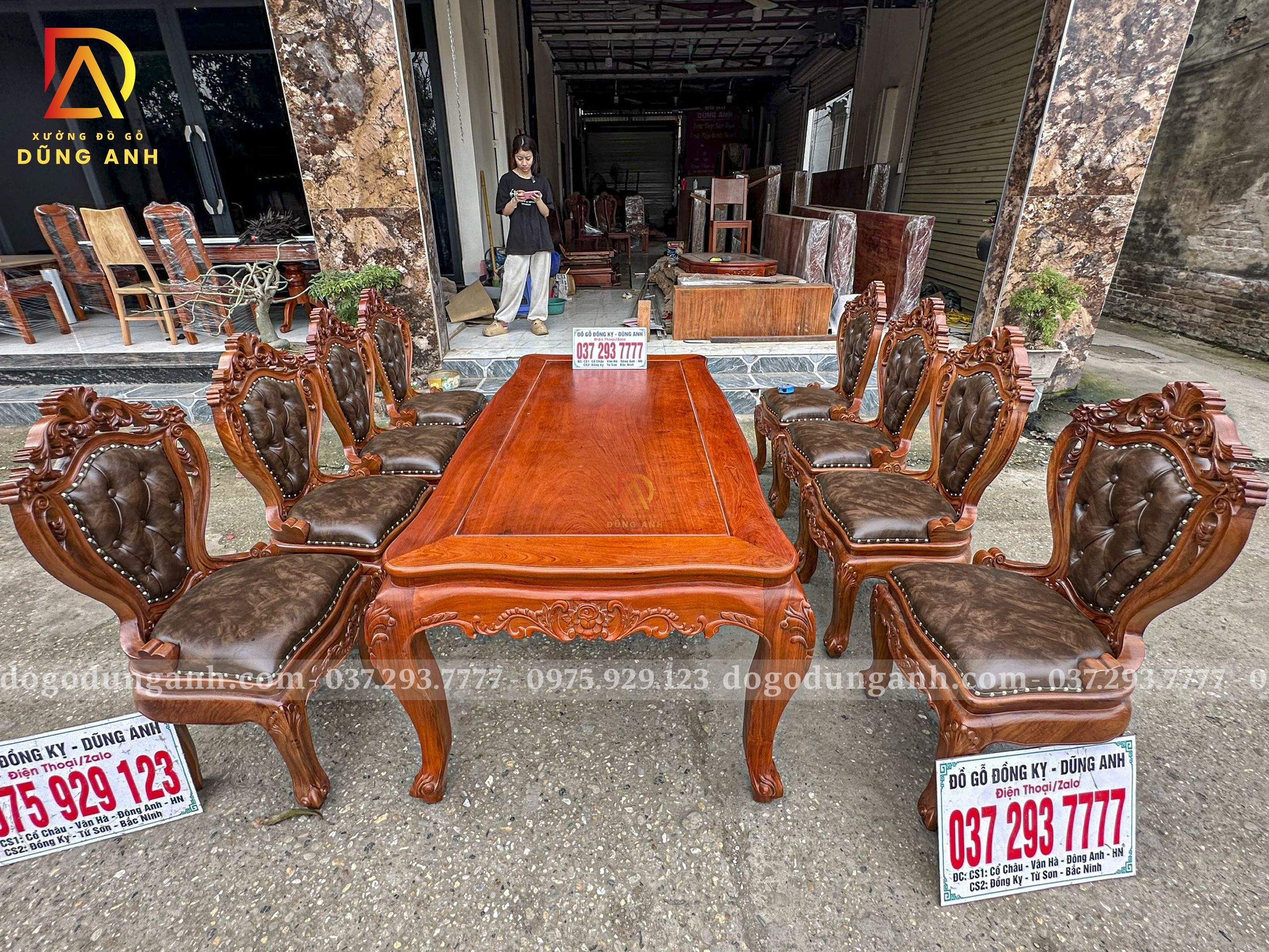 - 🔸 Bàn ăn 6 ghế kiểu Louis – gõ đỏ Pachy: Sự giao thoa giữa cổ điển và hiện đại, đường cong mềm mại tạo điểm nhấn.