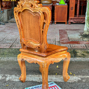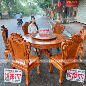 Đồ Gỗ Dũng Anh | Hoàn Thiện Sơn PU – Bộ Bàn Ăn 6 Ghế Louis Hoàng Gia + Bàn Tròn Yếm Bo | Gõ Đỏ Pachy