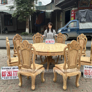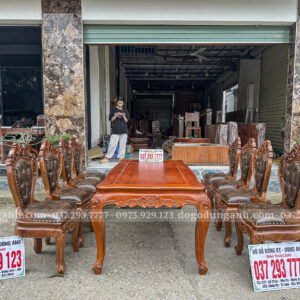 Đồ Gỗ Dũng Anh | Mẫu Bàn Ăn 6 Ghế Triện Thọ + Bàn tròn yếm bo – Gỗ Hương Đá | Đồ Gỗ Đồng Kỵ Dũng Anh