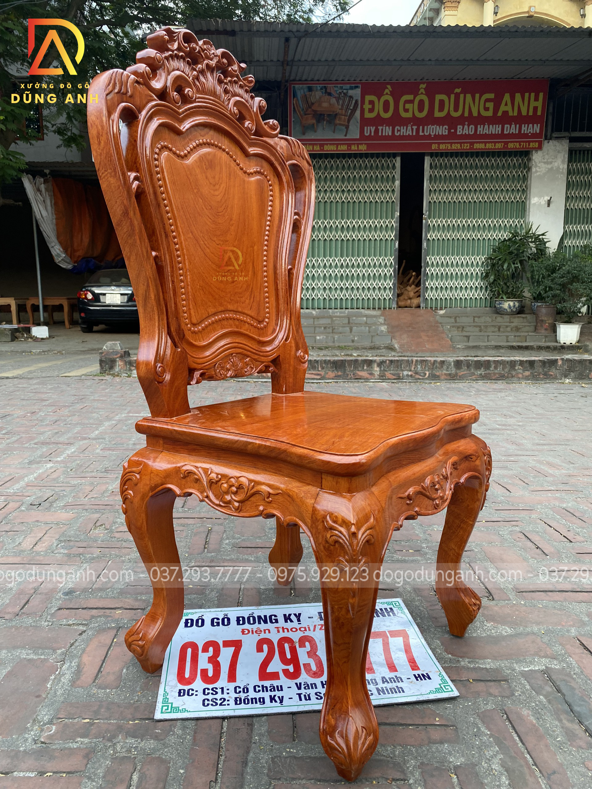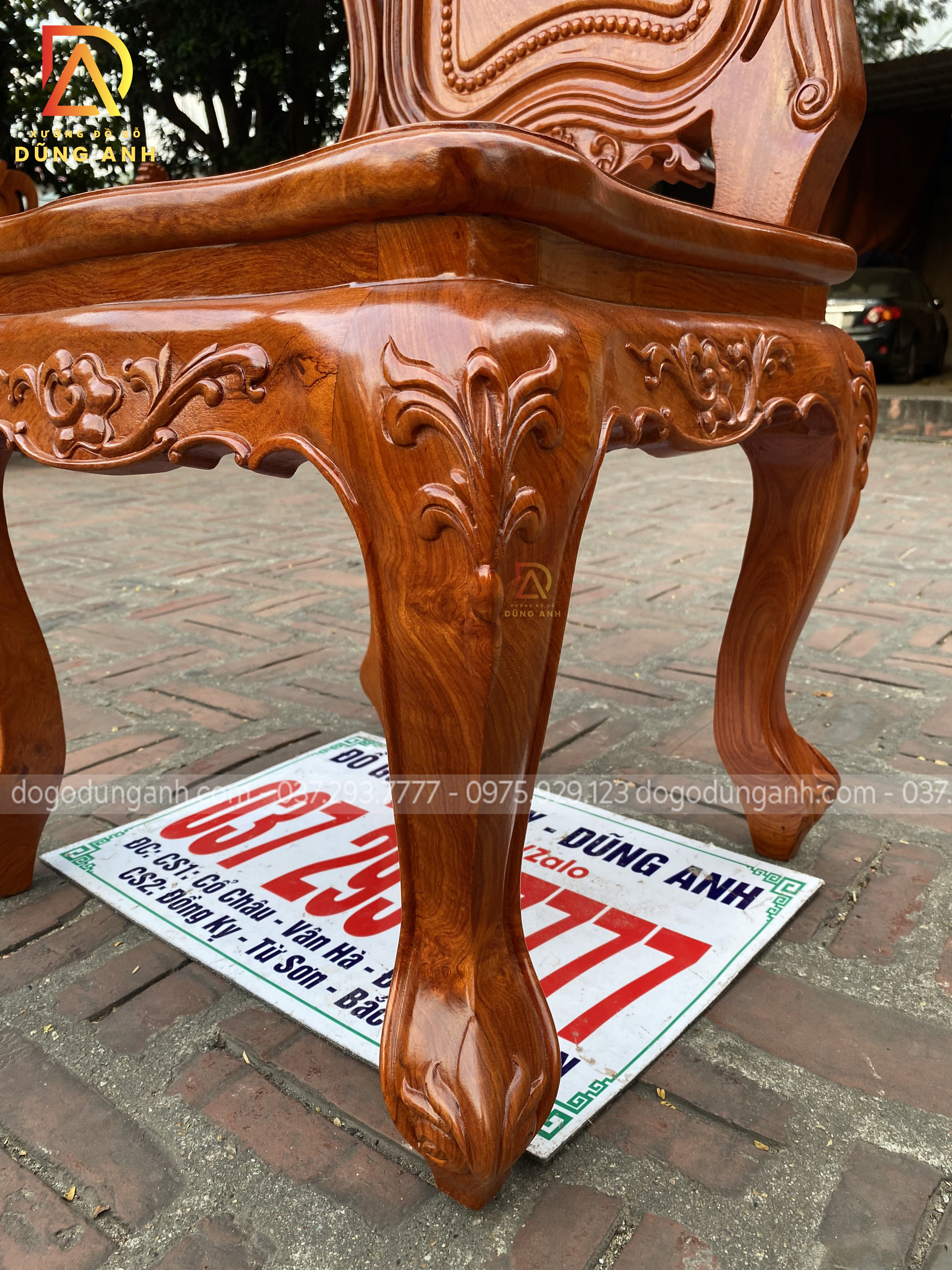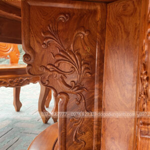 - Chân ghế vuông 8cm uốn con đục tỉa họa tiết hoa lá tây dáng dấp không chê vào đâu vào được, từ yếm đến cổ uống con tạo sự liên kết và có cảm giác cực ký tỉ mỉ