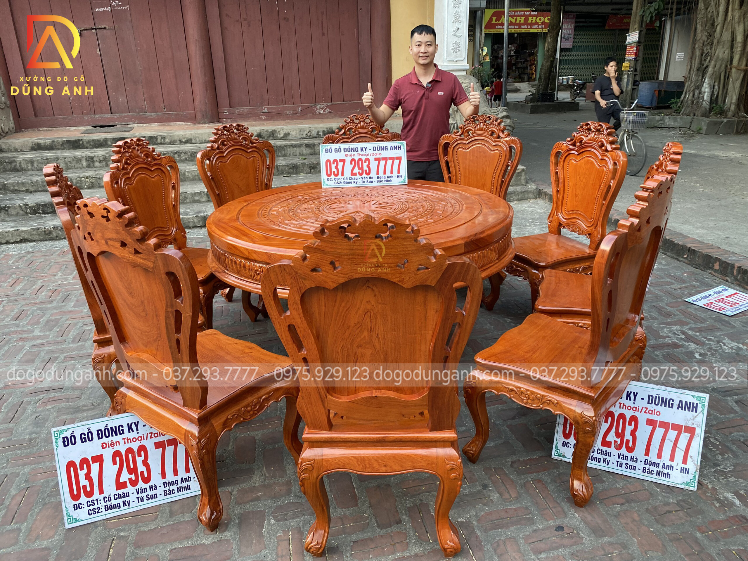 Quý khách có thể tham khảo thêm các mẫu bàn ghế ăn đẹp, bàn ghế ăn nguyên khối, các mẫu ghế ăn đẹp thì có thể liên hệ ngay với Xưởng đồ gỗ Dũng Anh qua:
