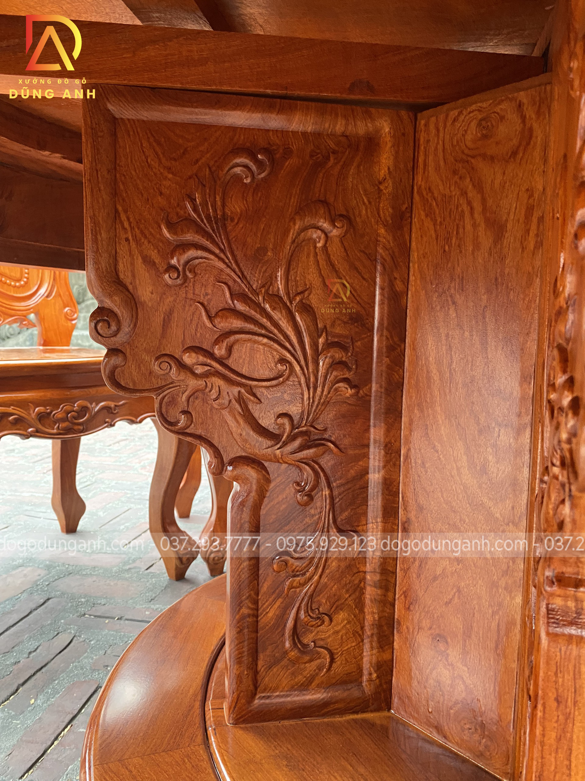 - Mặc dù kích thước của nó cực kỳ ấn tượng nhưng không hề thô ráp mà rất linh hoạt, mịn màng nhờ những các họa tiết và do các nghệ nhân tại đây thực hiện. Xưởng đồ gỗ Dũng Anh