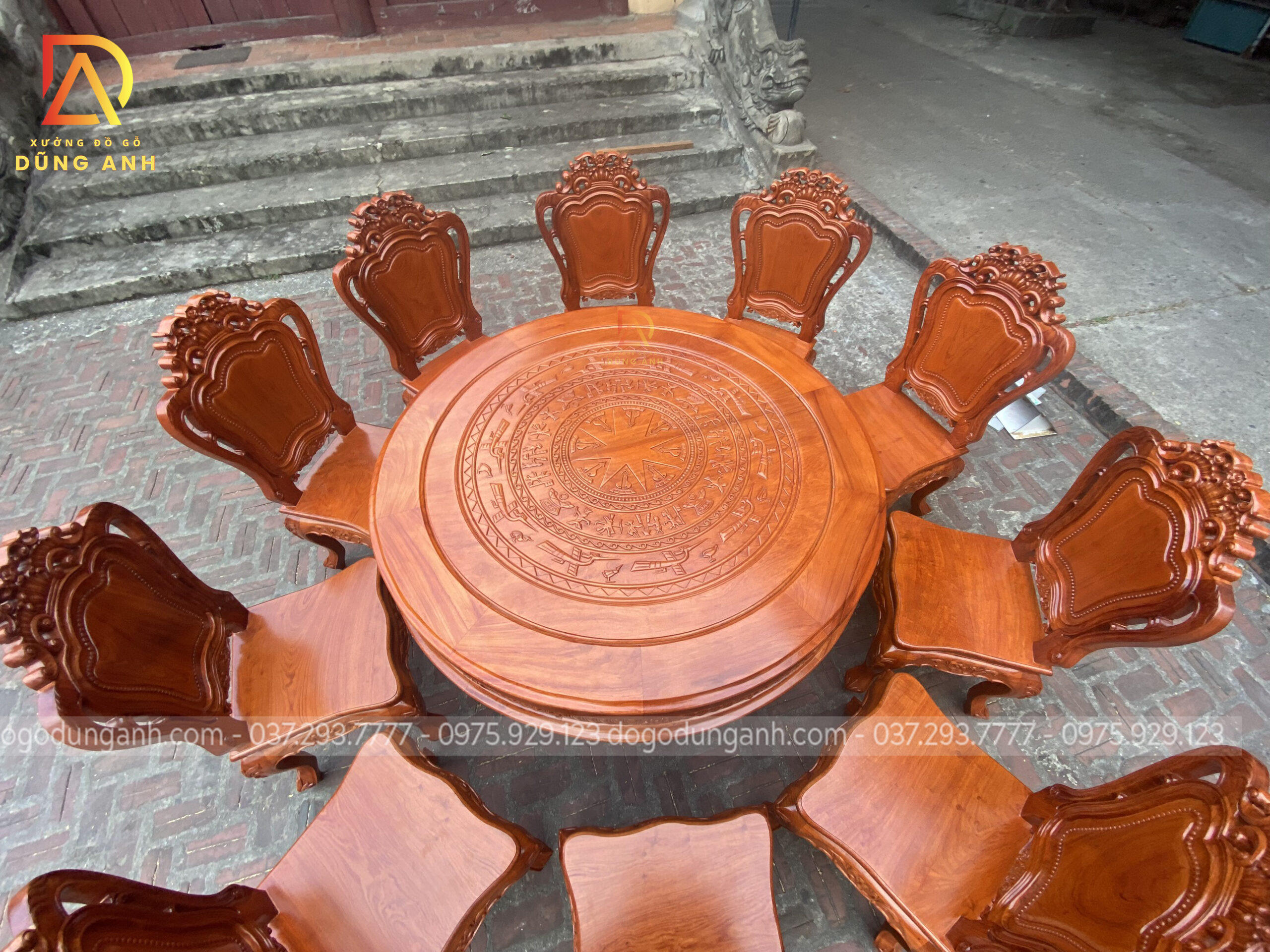 SIÊU PHẨM 10 ghế Louis Hoàng Gia + bàn đục Trống Đồng Đông Sơn cực SẮC NÉT chất liệu gỗ Hương Đá