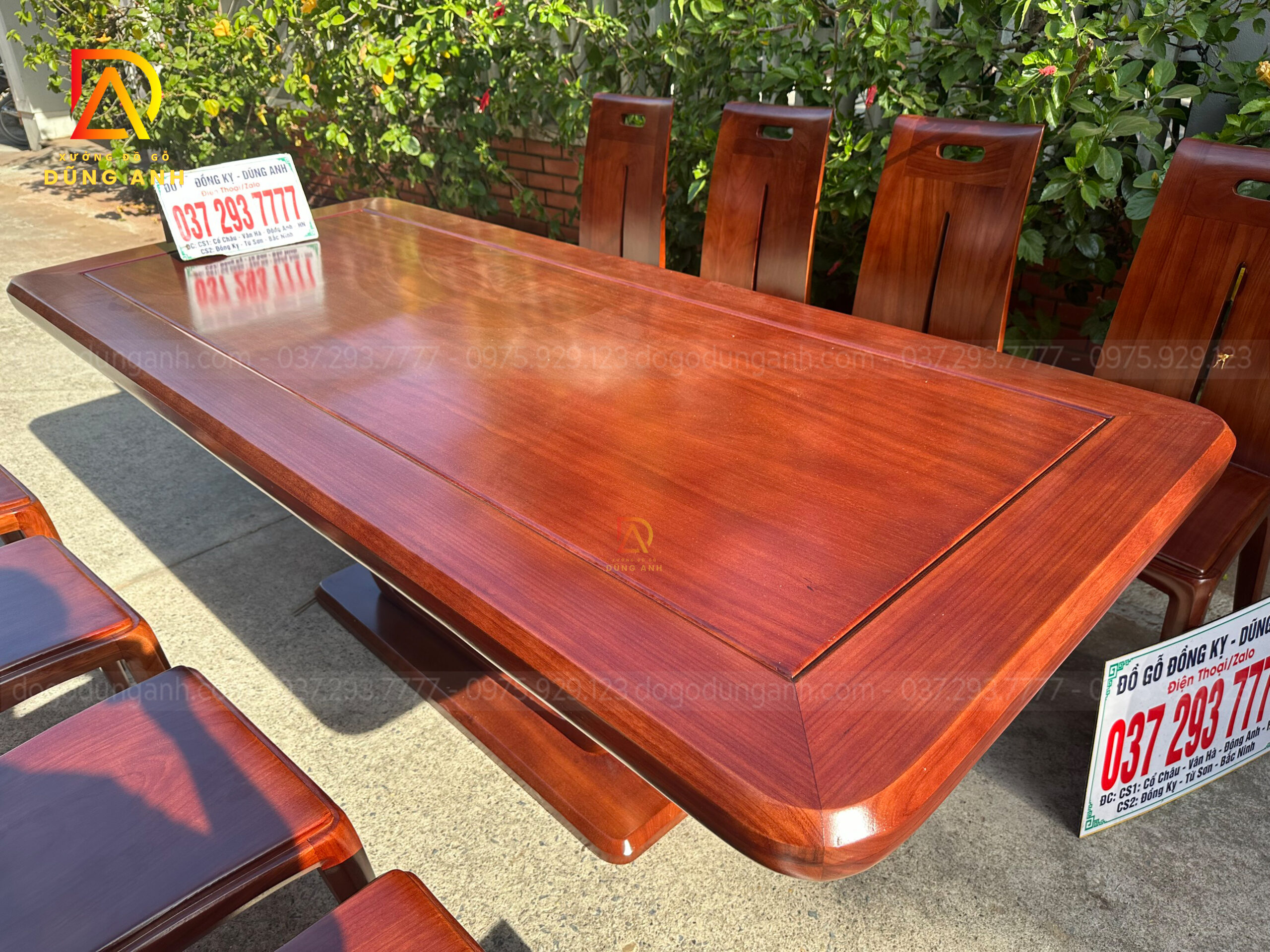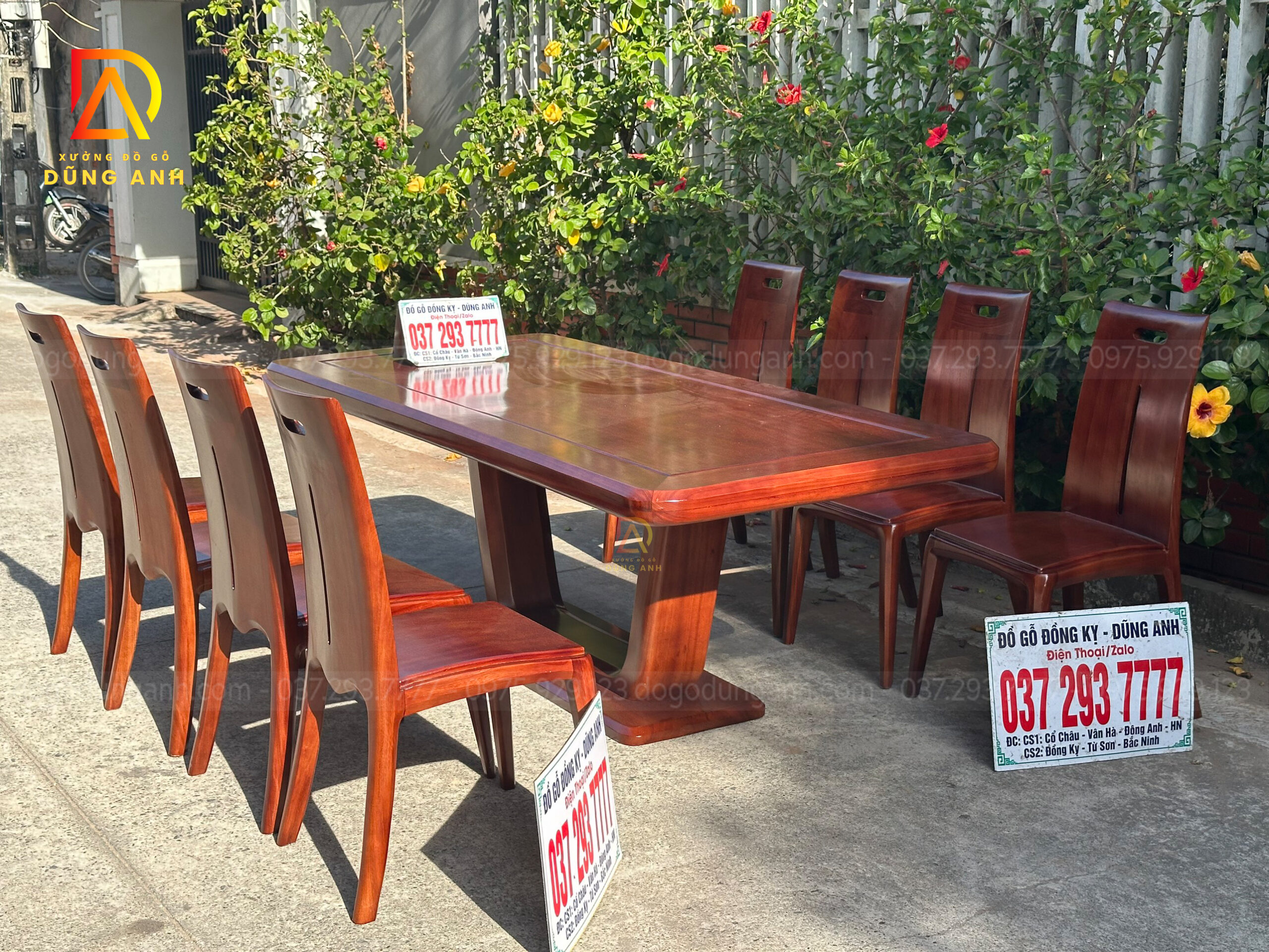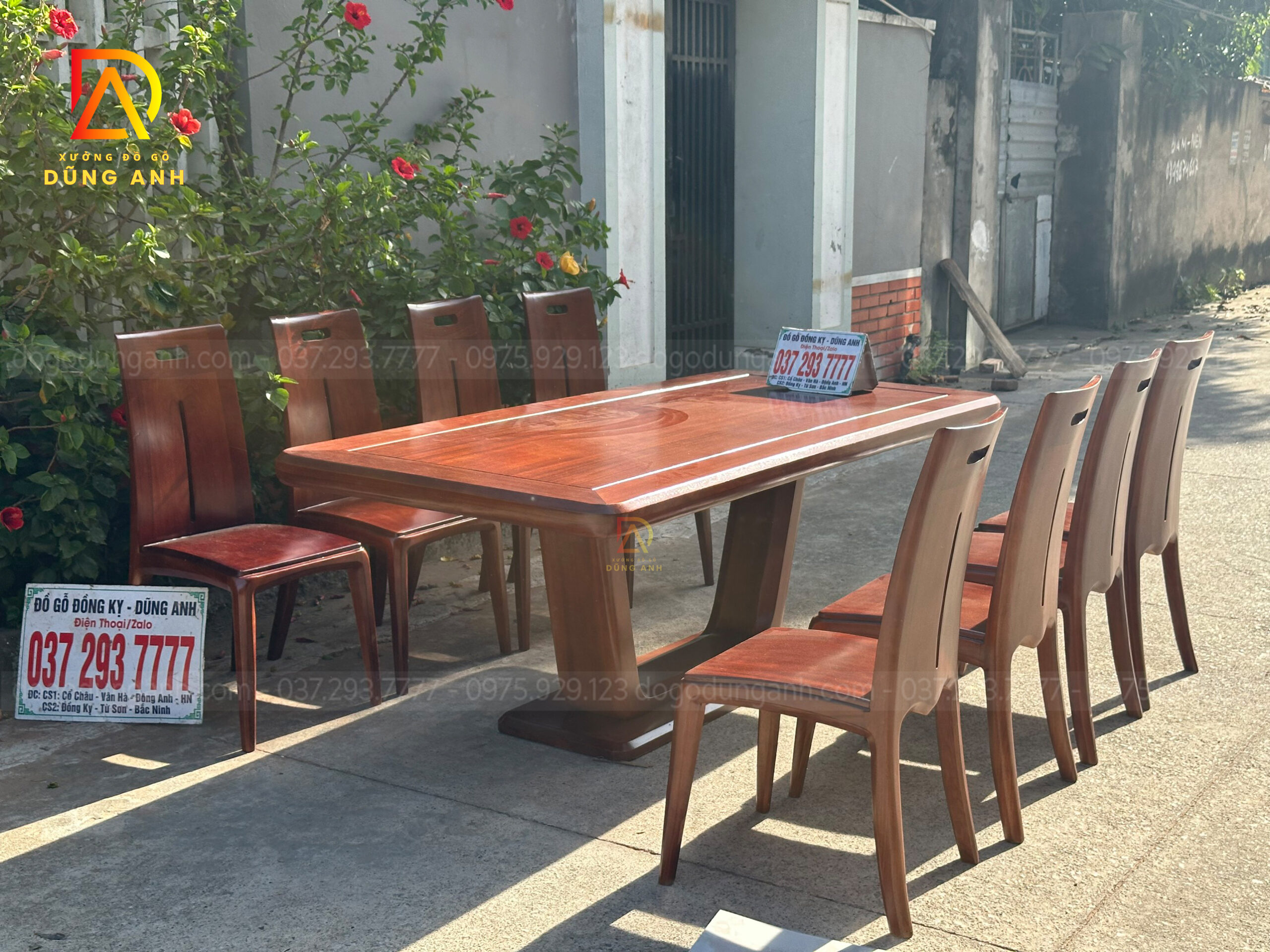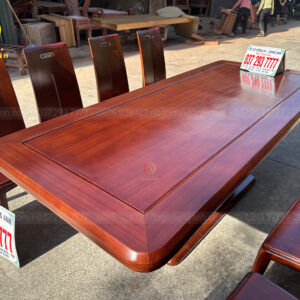 SIÊU PHẨM 8 ghế Hiện đại Khúc Quanh + Bàn chữ nhật V.I.P – gỗ Gõ Đỏ
