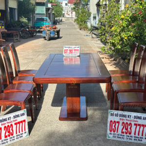 Gỗ gõ đỏ được biết đến là một trong những loại gỗ quý hiếm, nổi bật với màu sắc đỏ tự nhiên và vân gỗ đẹp mắt. Không chỉ mang lại vẻ đẹp thẩm mỹ, gỗ gõ đỏ còn có độ bền vượt trội, khả năng chống mối mọt và nấm mốc, đảm bảo sản phẩm luôn giữ được hình dáng và chất lượng theo thời gian. Sự chắc chắn và ổn định của gỗ gõ đỏ giúp bộ sản phẩm này trở thành lựa chọn lý tưởng cho những gia đình yêu thích sự bền bỉ và sang trọng.