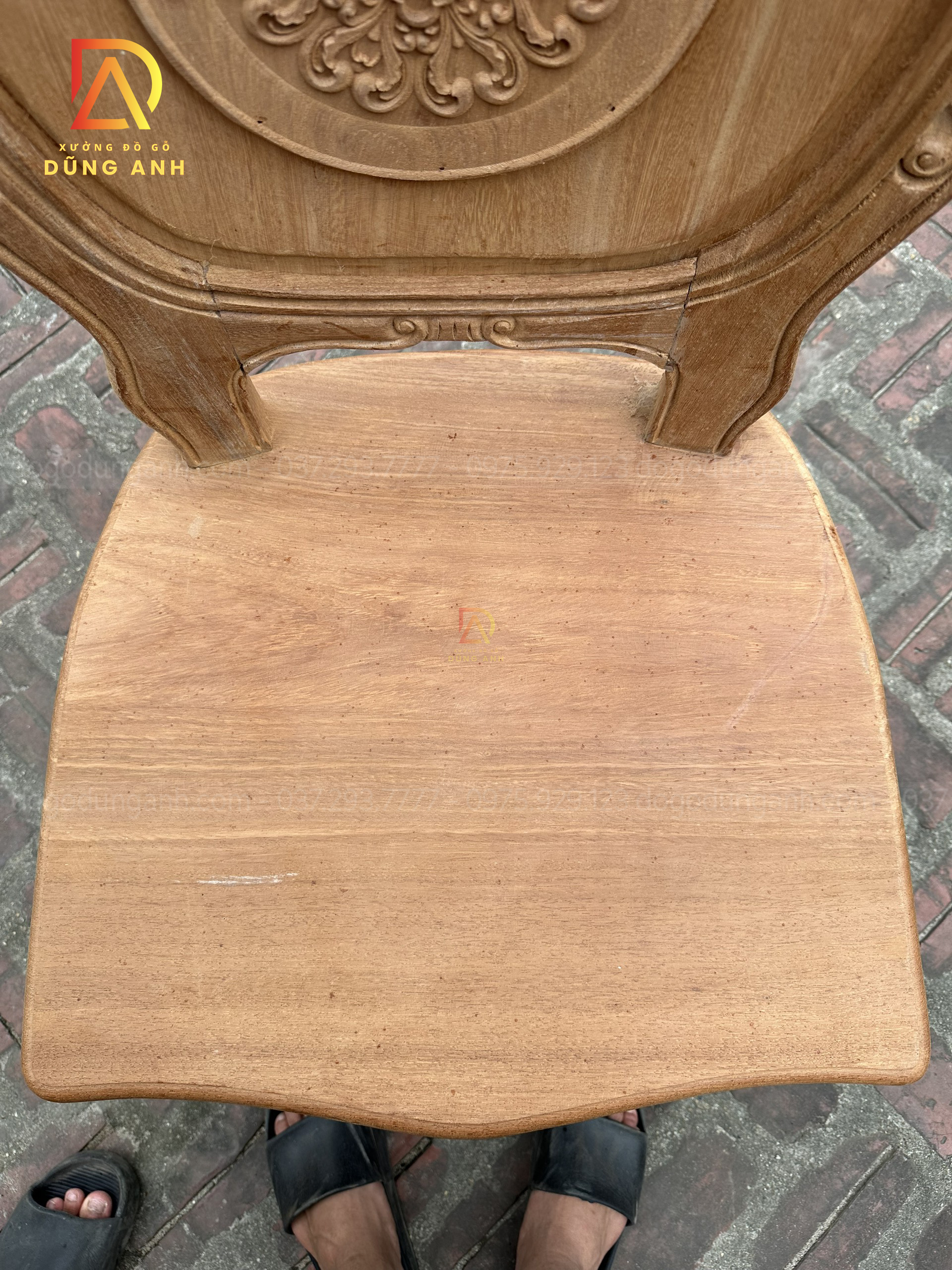 - Mặt ghế chiều rộng là 52 cm và chiều sâu là 55 cm được làm bo cong tạo điểm nhấn cho chiếc ghế , mặt ghế được lựa lọc gỗ lựa lọc vân kĩ càng lên quý khách hàng có thể thấy độ vân veo vân núi cực kì đẹp mắt