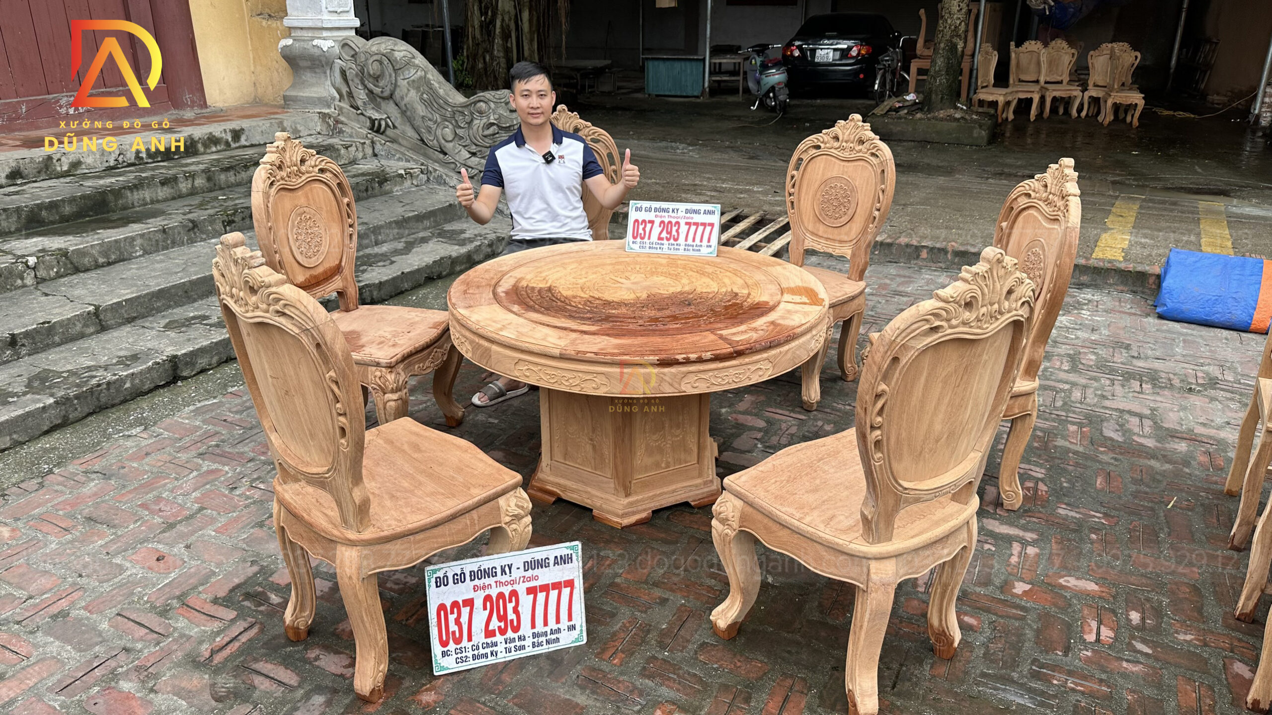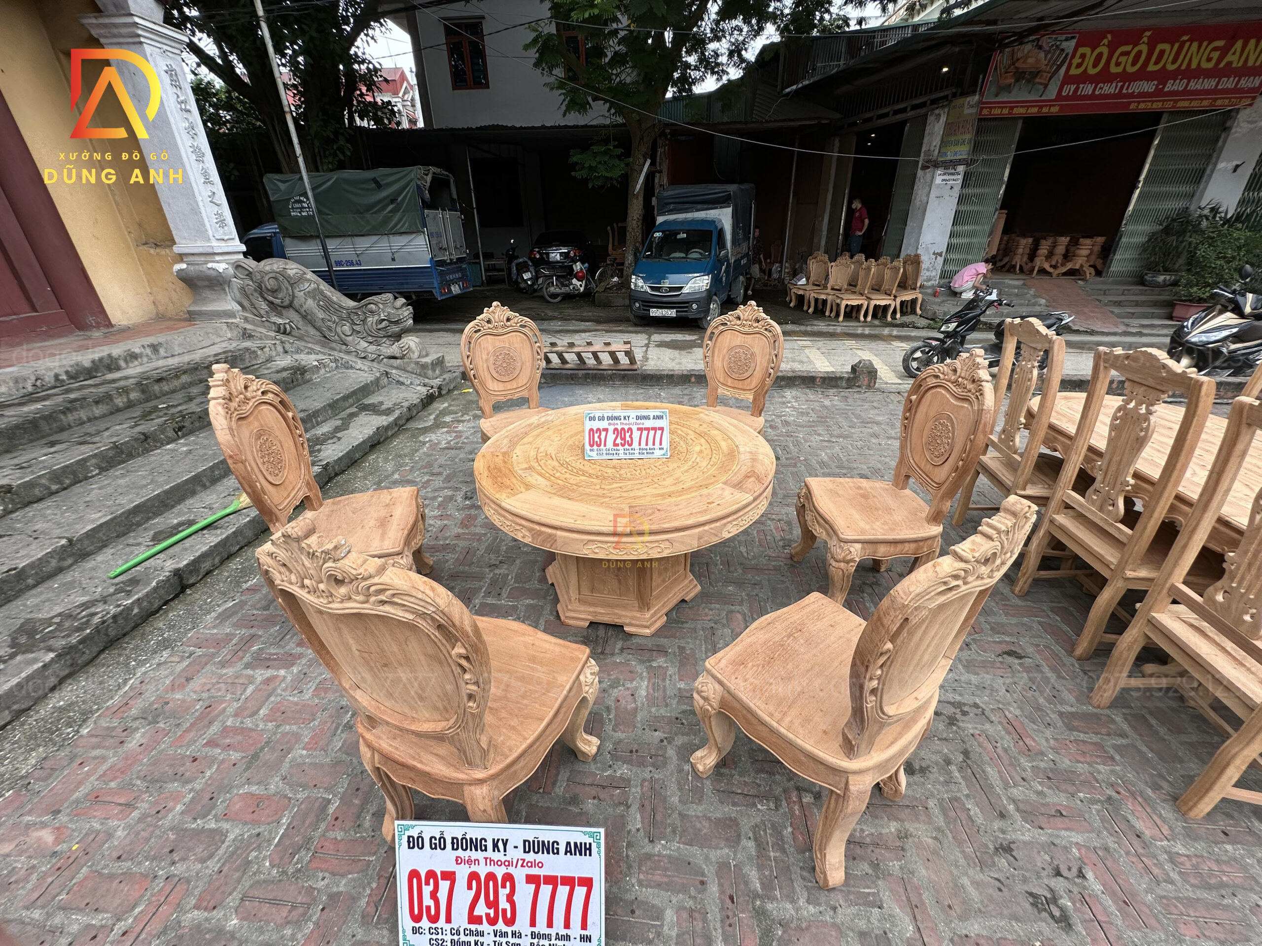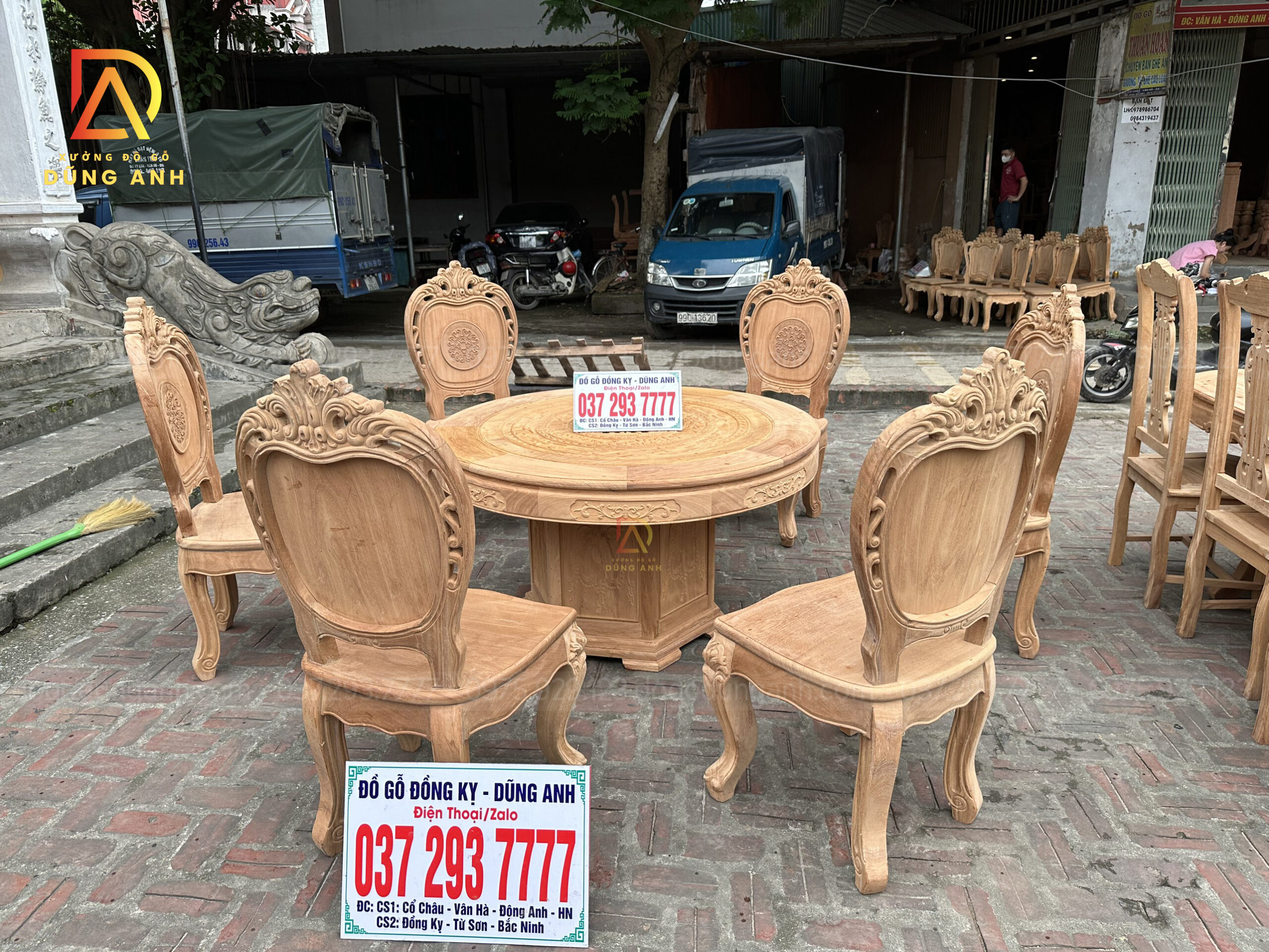 Quý khách có thể tham khảo thêm các mẫu bàn ghế ăn đẹp, bàn ghế ăn nguyên khối, các mẫu ghế ăn đẹp thì có thể liên hệ ngay với Xưởng đồ gỗ Dũng Anh qua:
