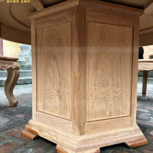 - Mặt khuôn tranh và yếm dày 3cm, yếm đục họa tiết hoa lá tây chạy xung quanh bàn tạo thêm điểm nhấn cho chiếc bàn