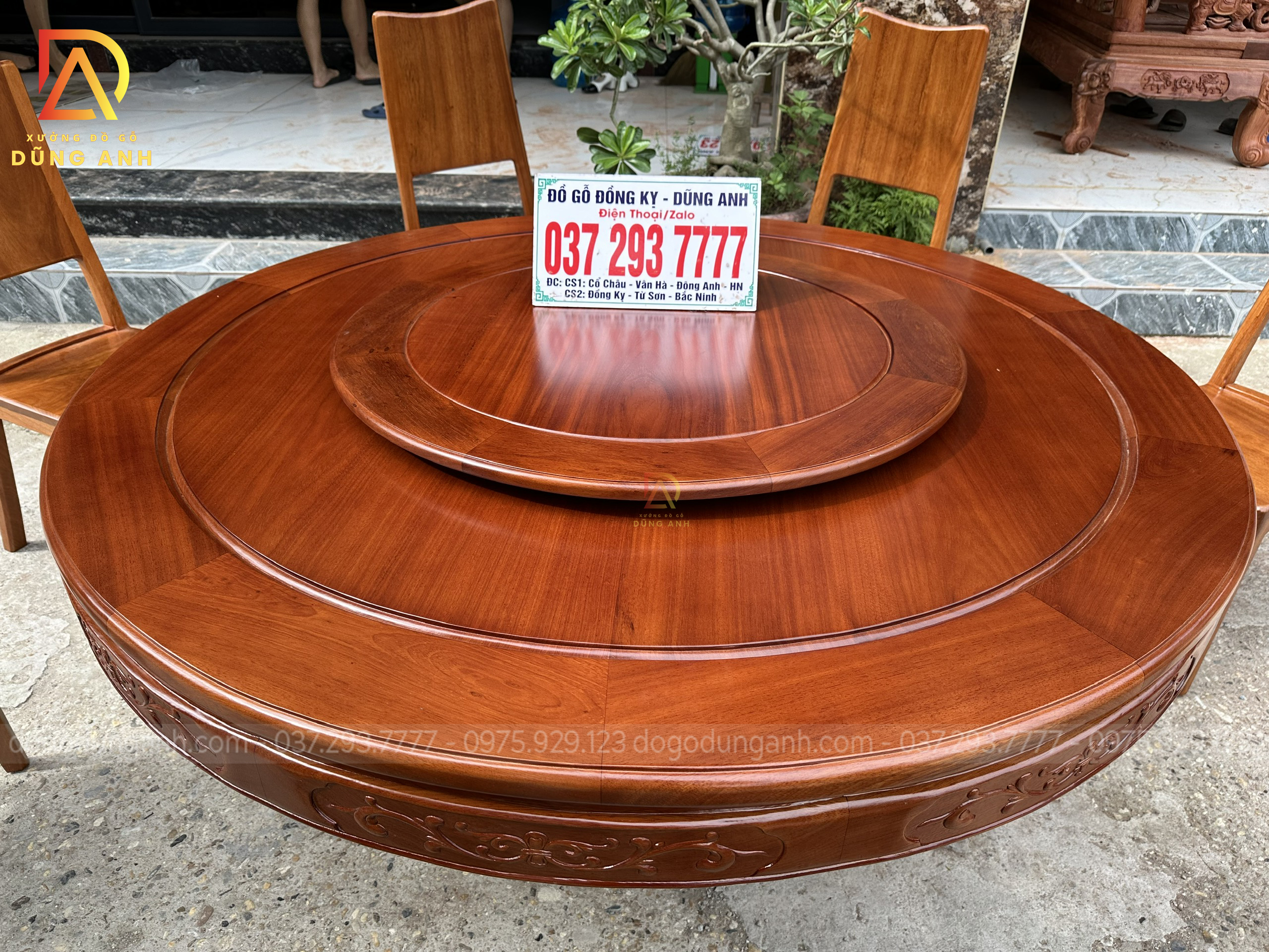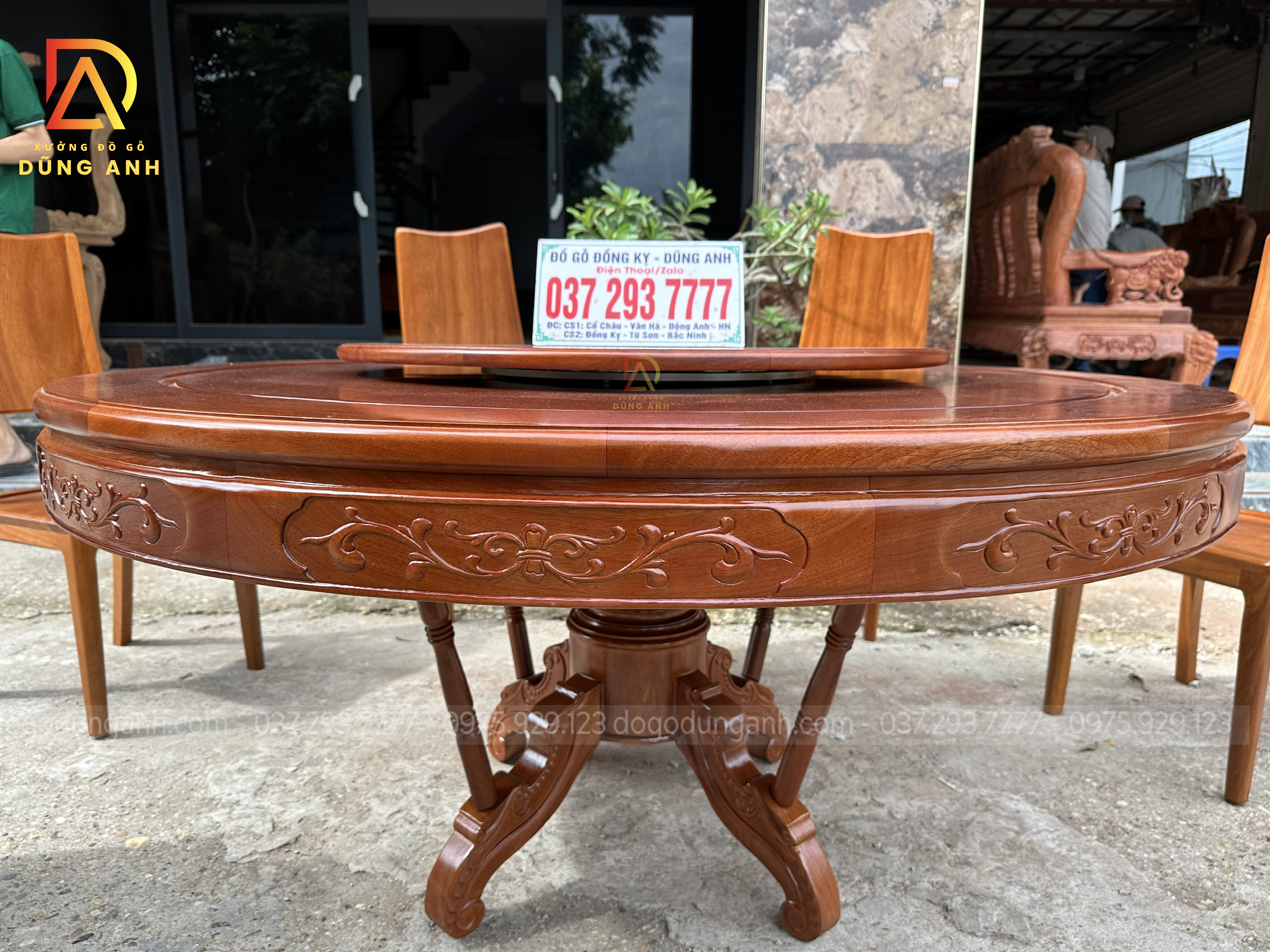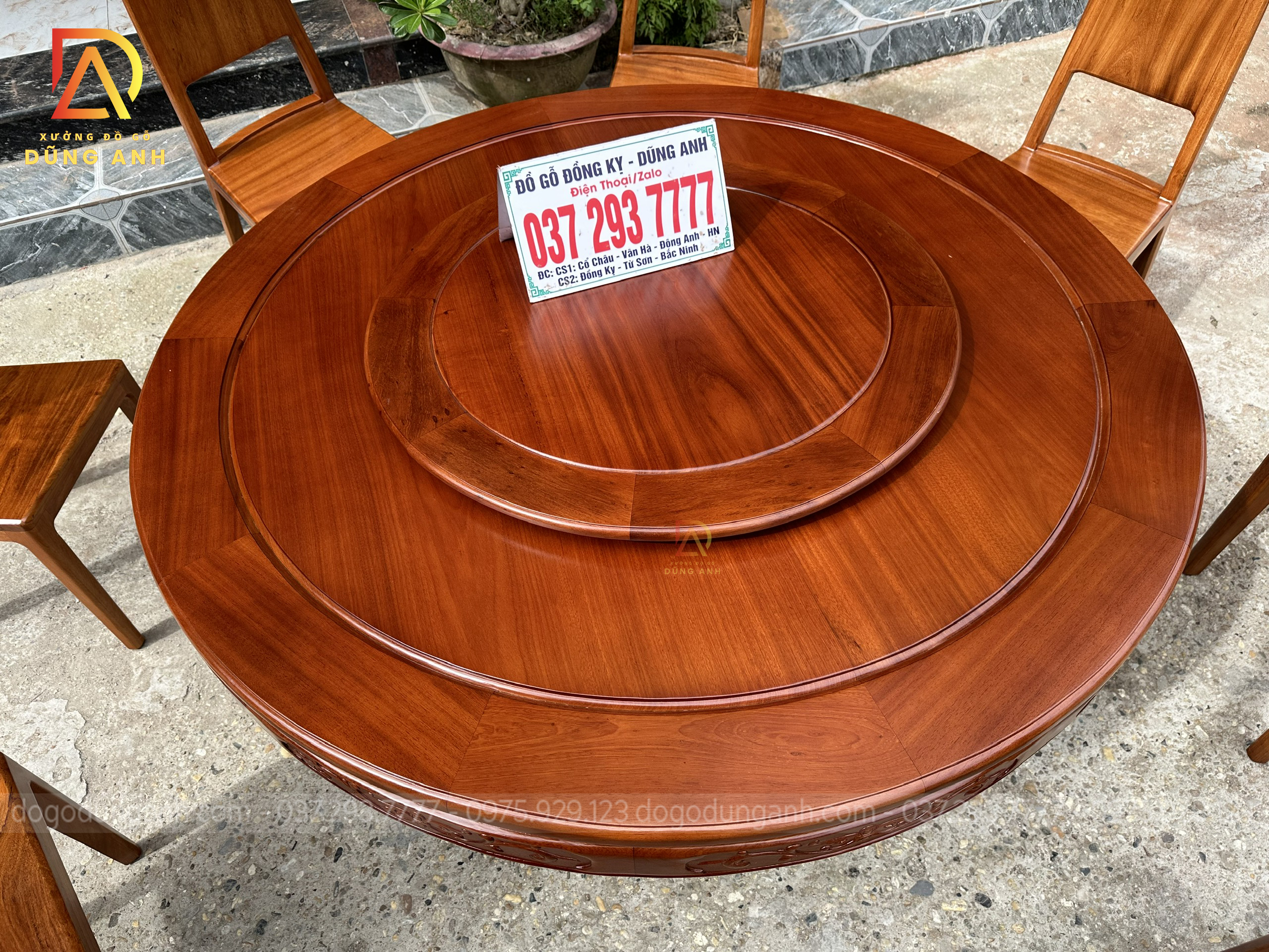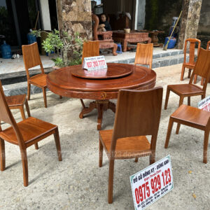 Dogodunganh | Siêu Phẩm 8 Ghế Hiện Đại kết hợp Bàn Tròn có Mâm Xoay VÂN SIÊU ĐẸP – Gỗ Gõ Đỏ Nam Phi