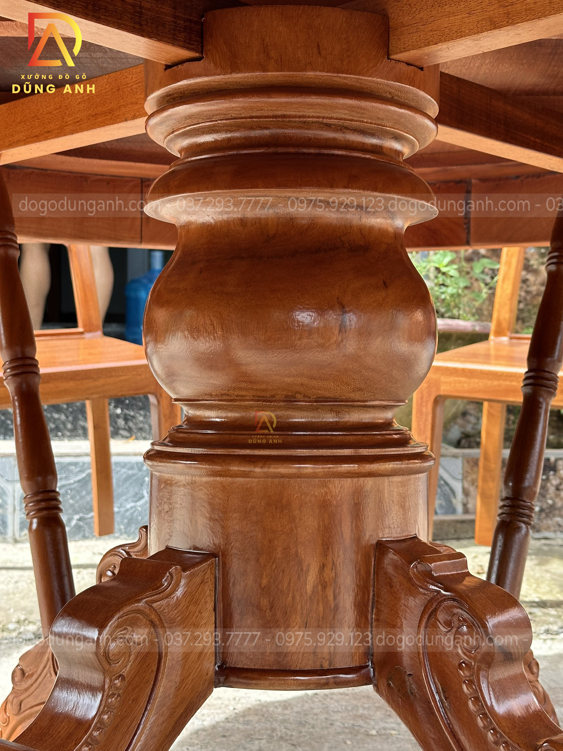 Chiếc chân trụ bản vuông có kích thước 24 cm và được tiện tròn thủ công bằng tay với các bác thợ có trên 20 năm kích nghiệm
