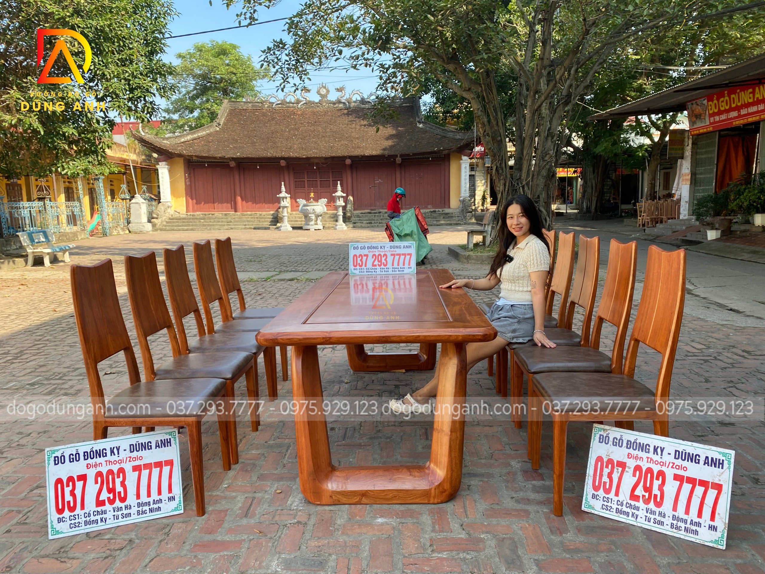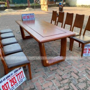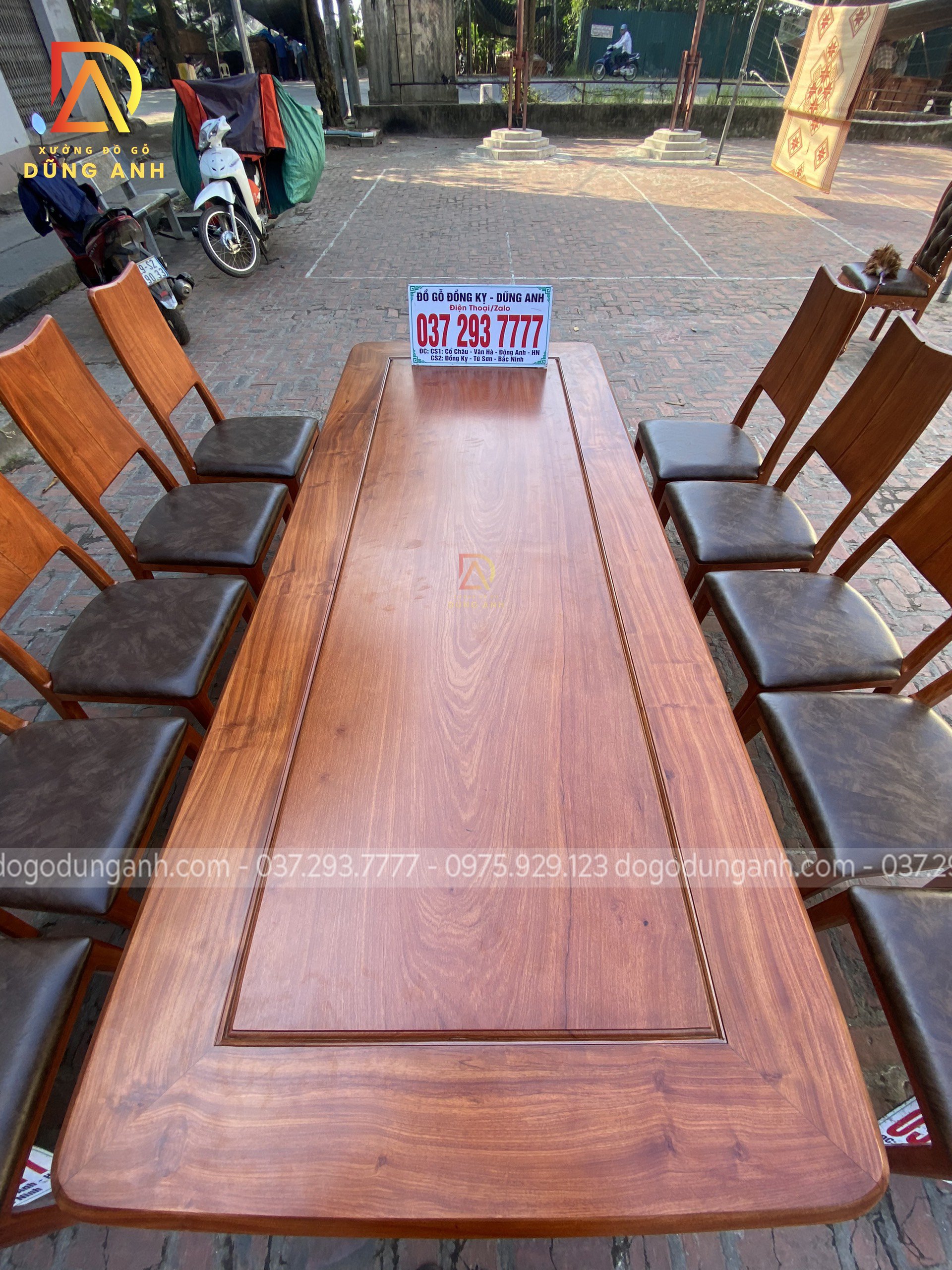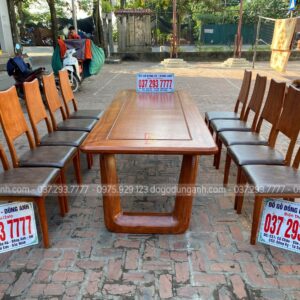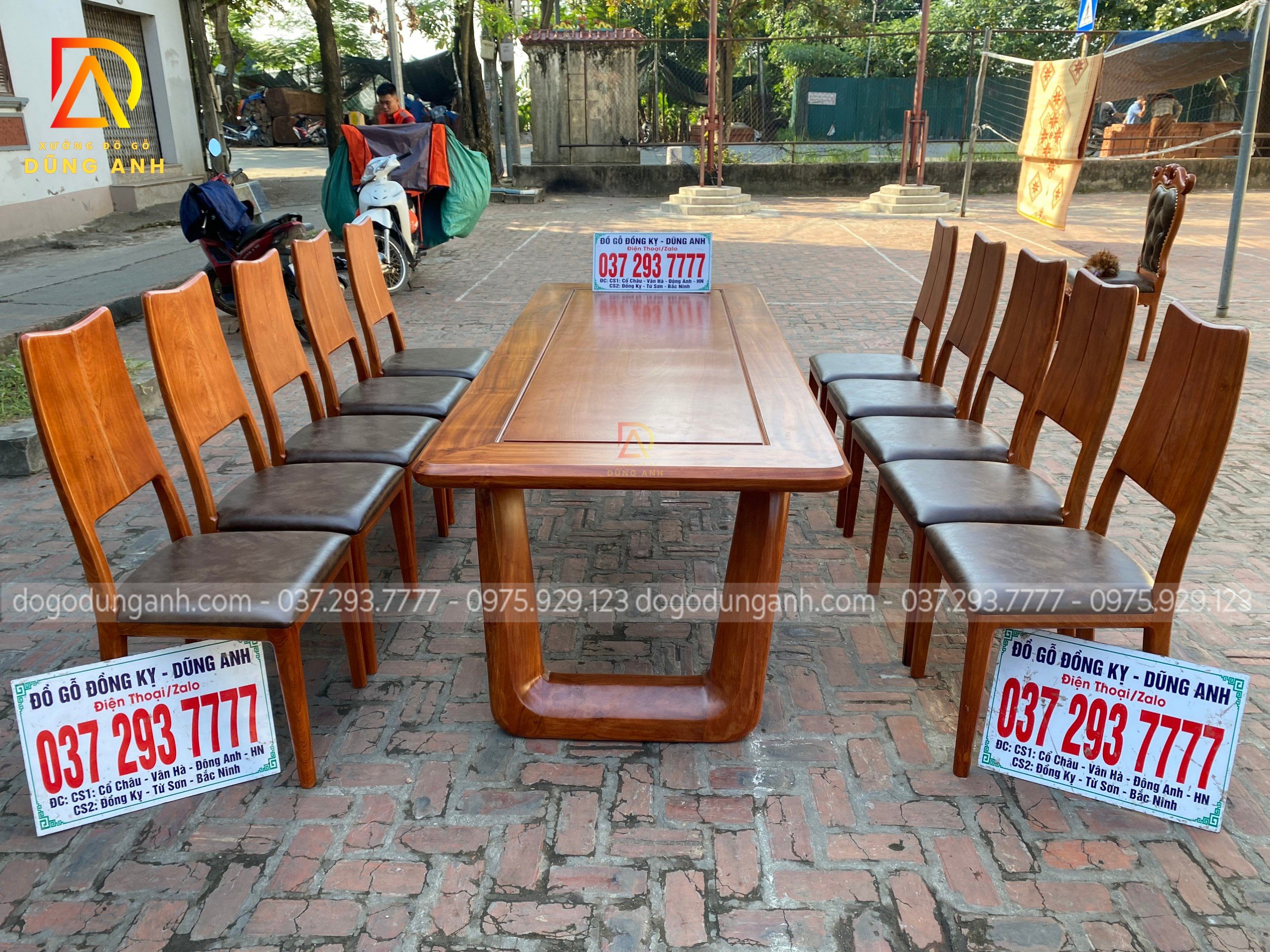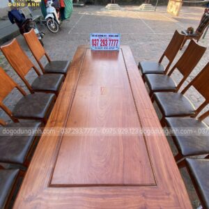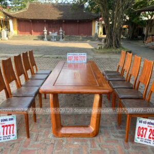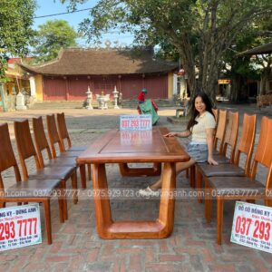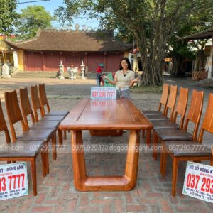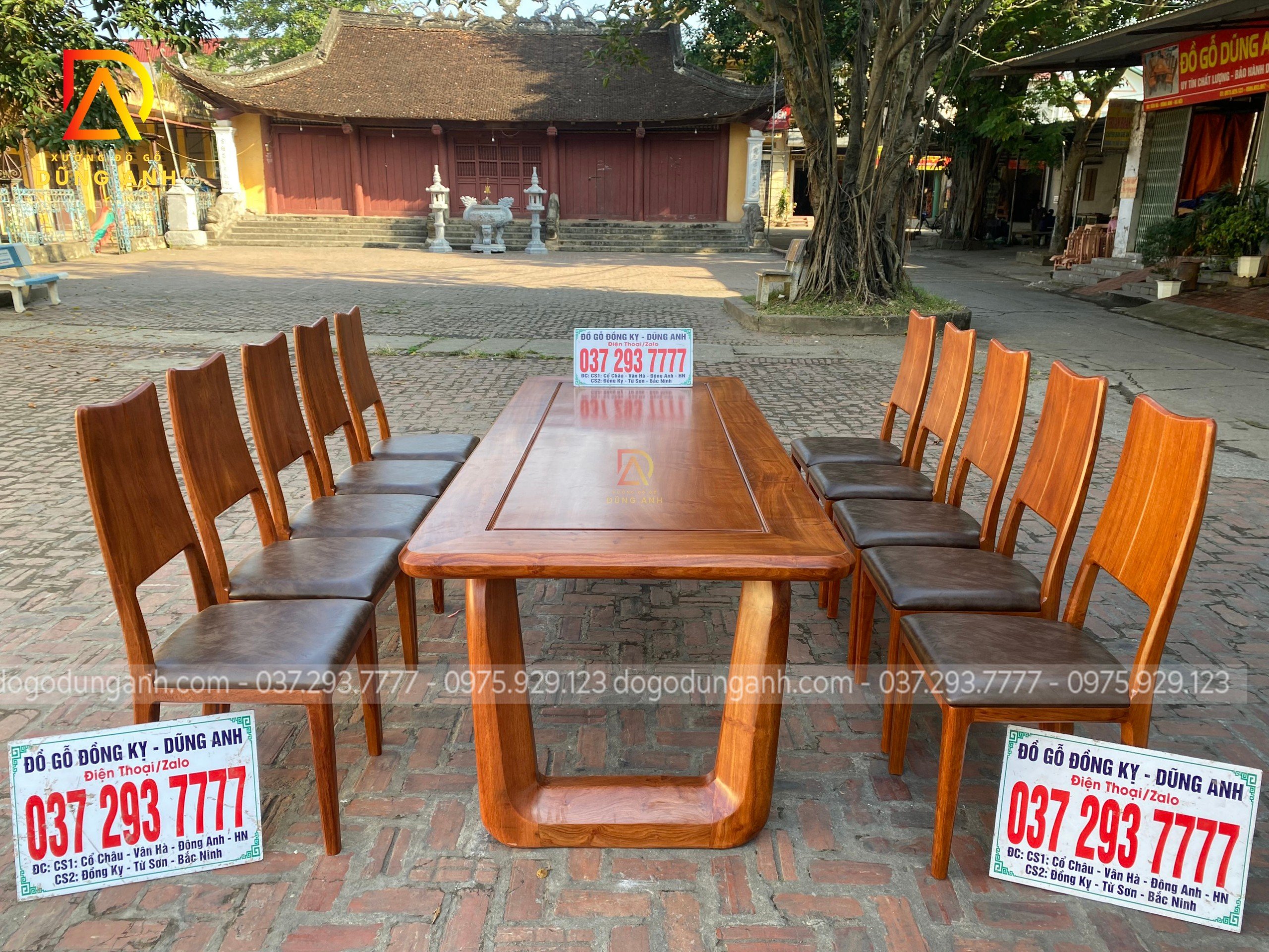 SIÊU PHẨM bàn hiện đại trụ chữ U kèm 10 ghế hiện đại – chất liệu gỗ Hương Đá