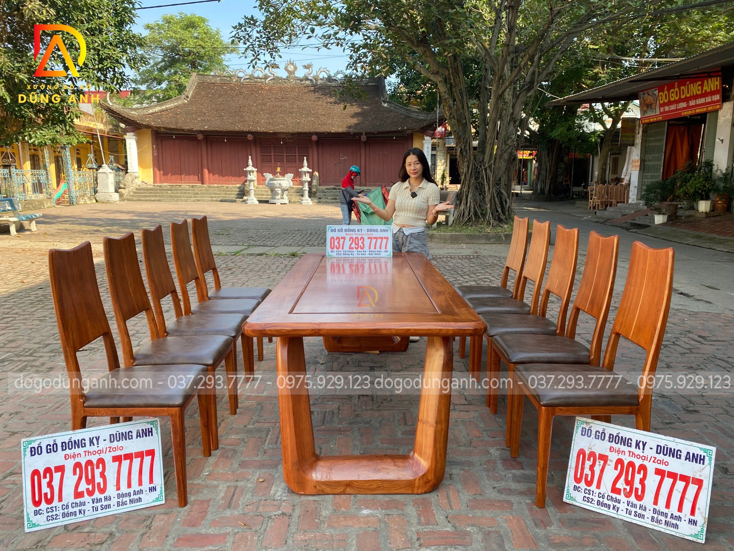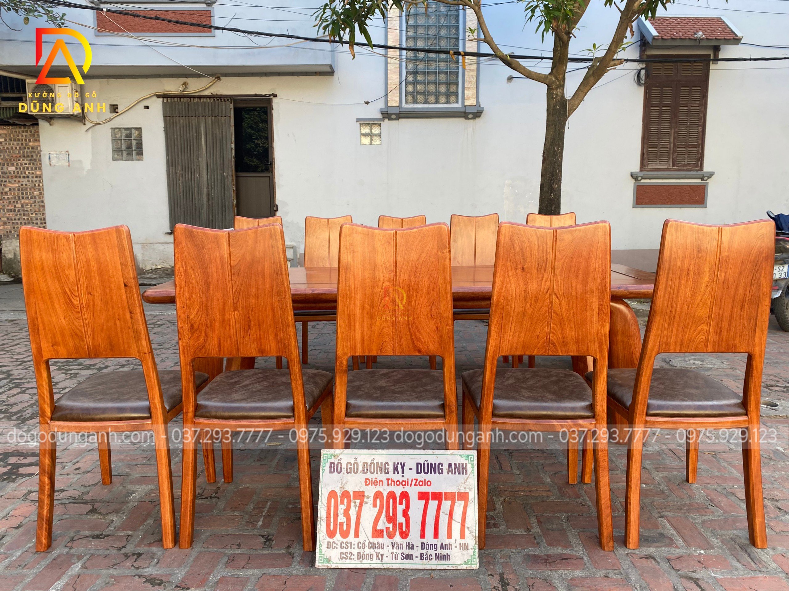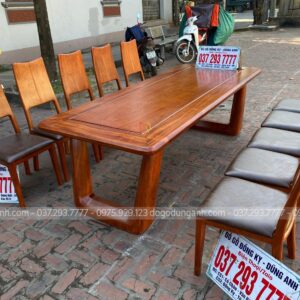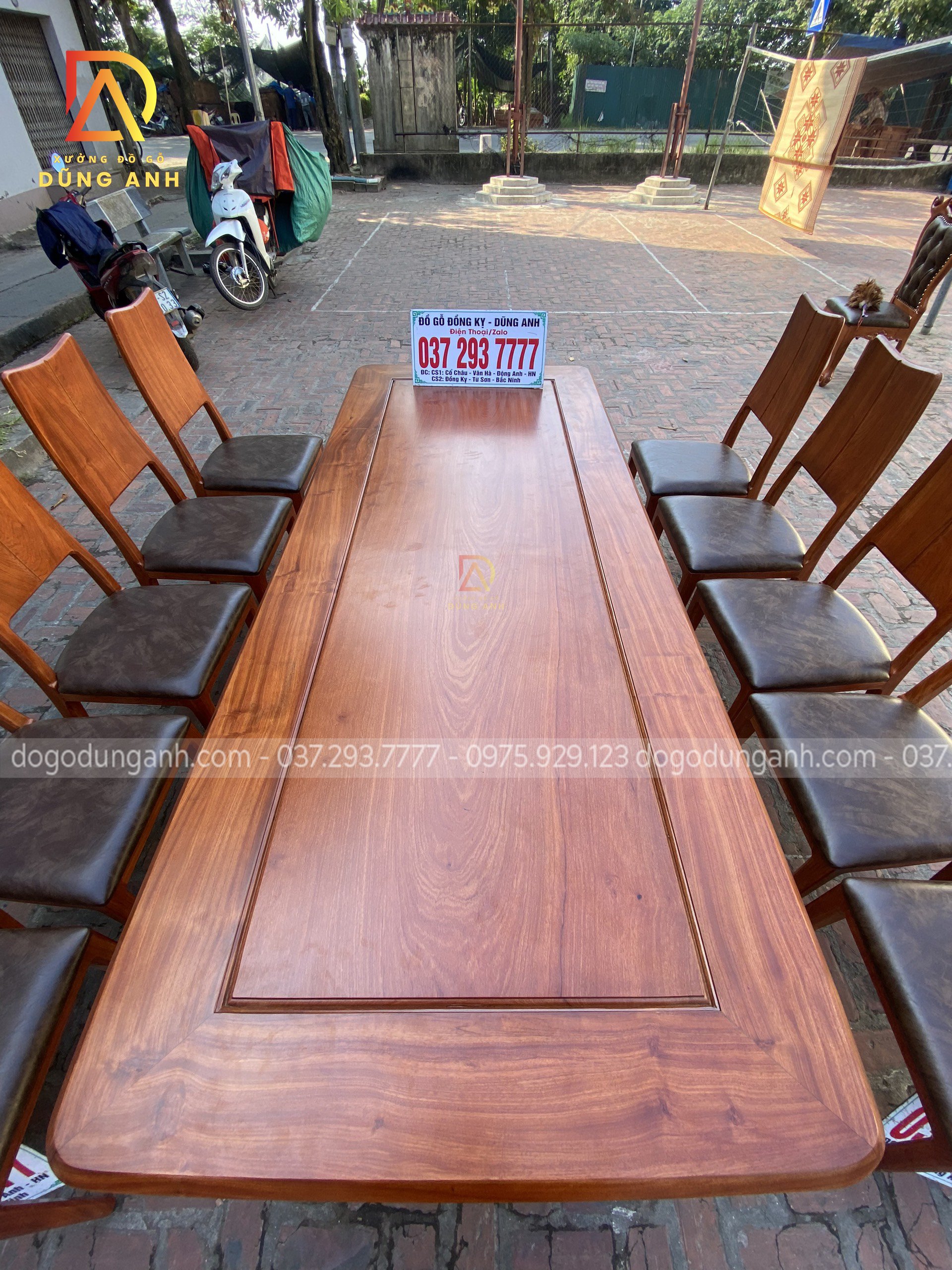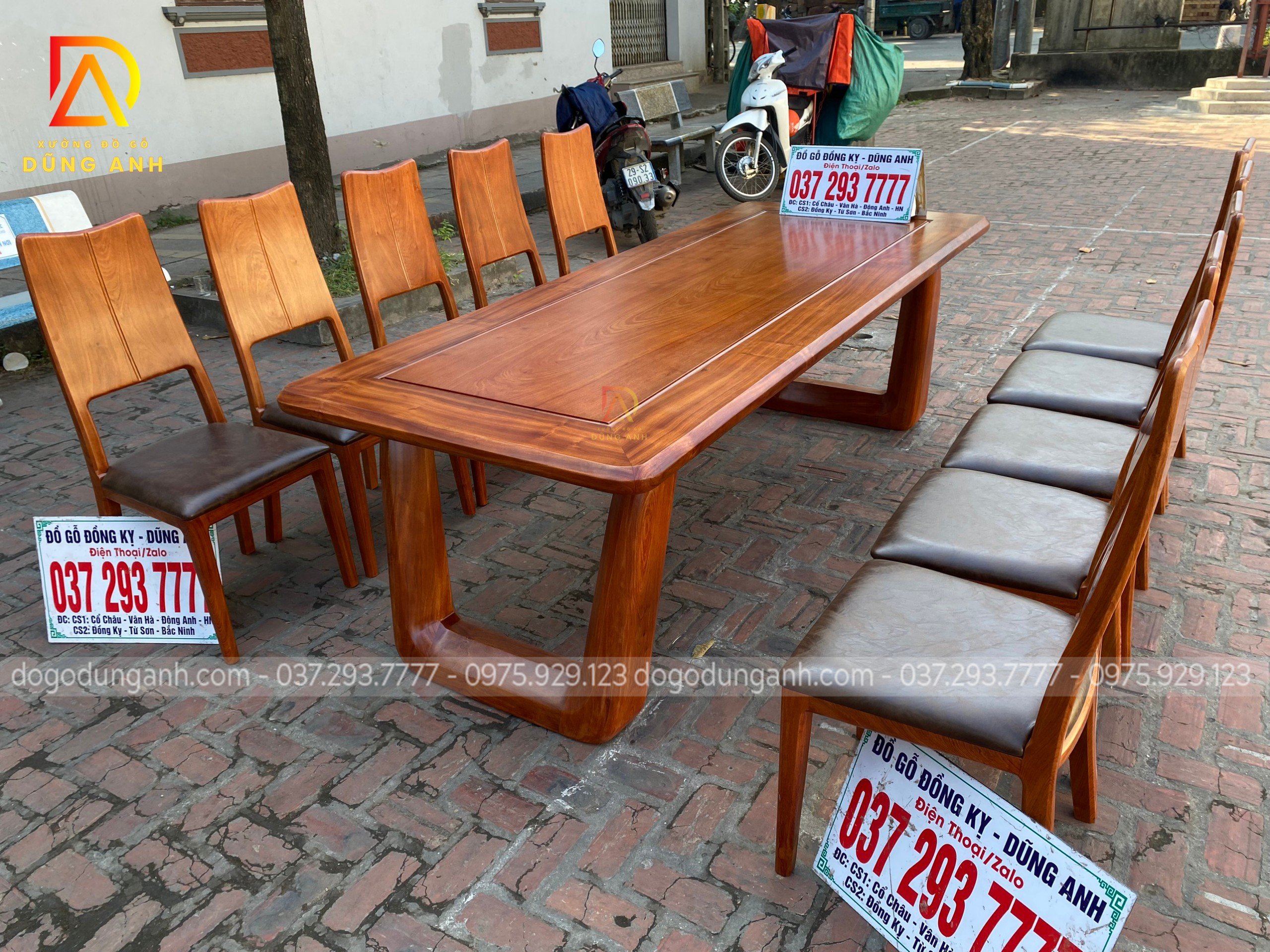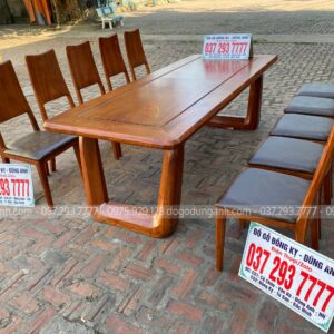 SIÊU PHẨM bàn hiện đại trụ chữ U kèm 10 ghế hiện đại – chất liệu gỗ Hương Đá