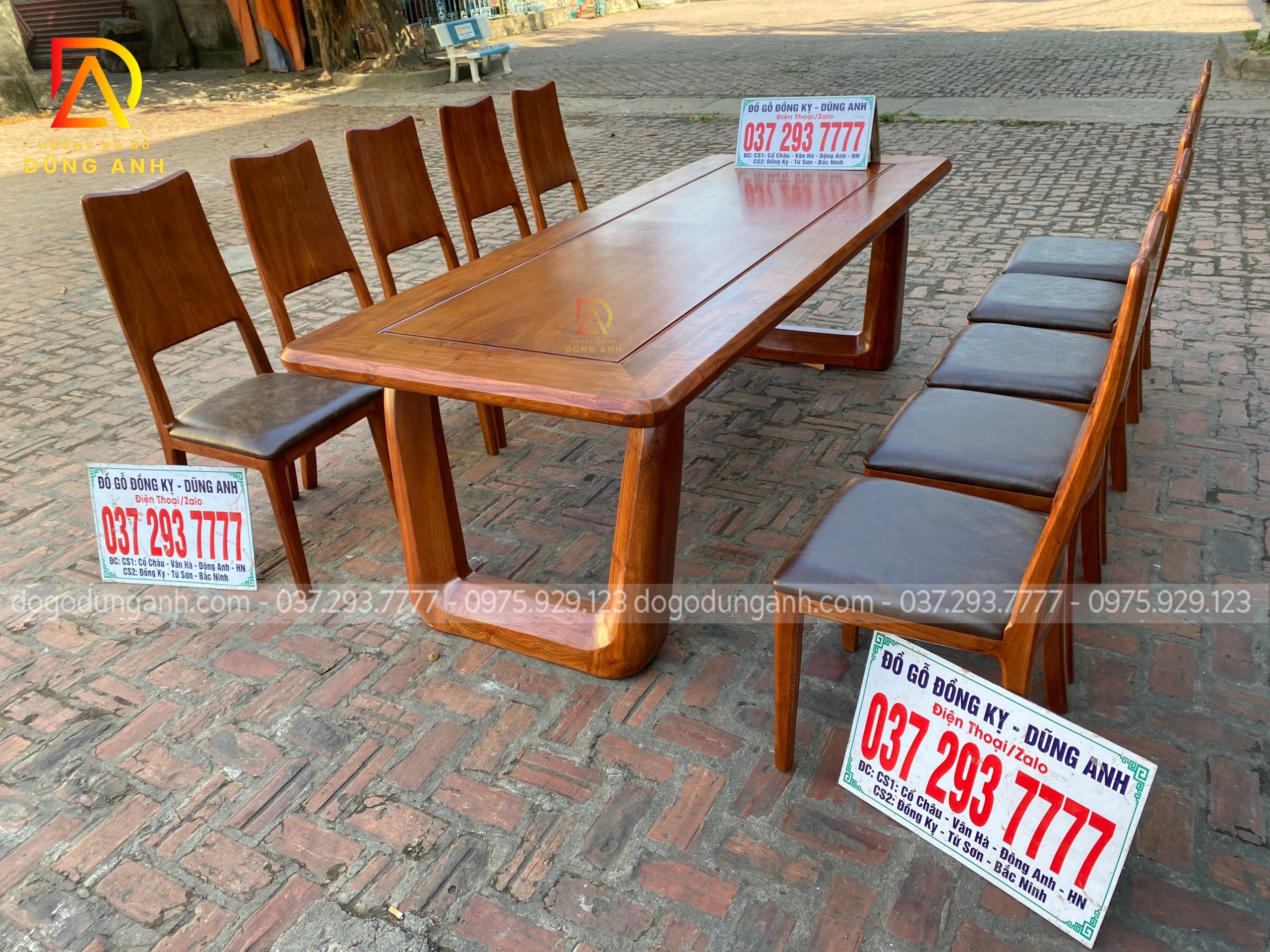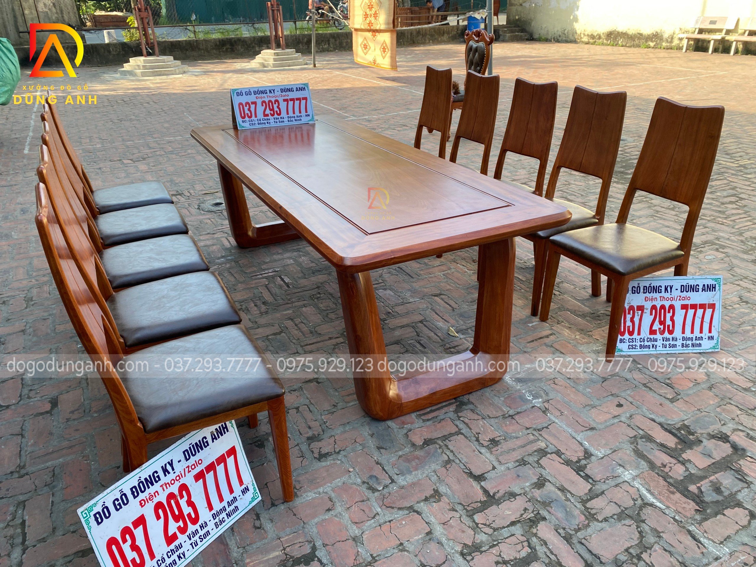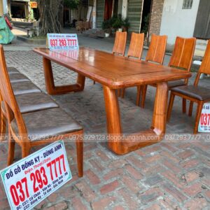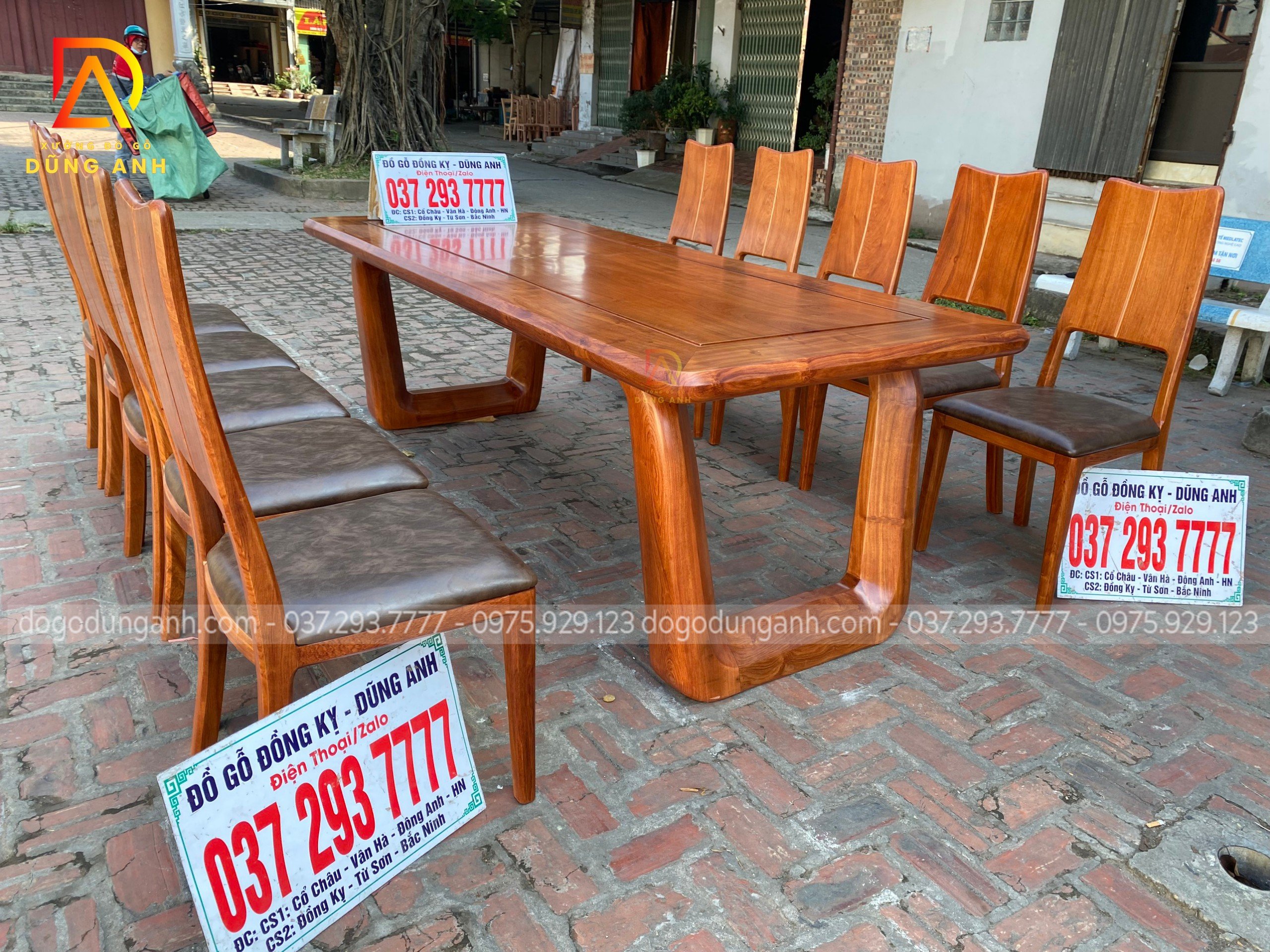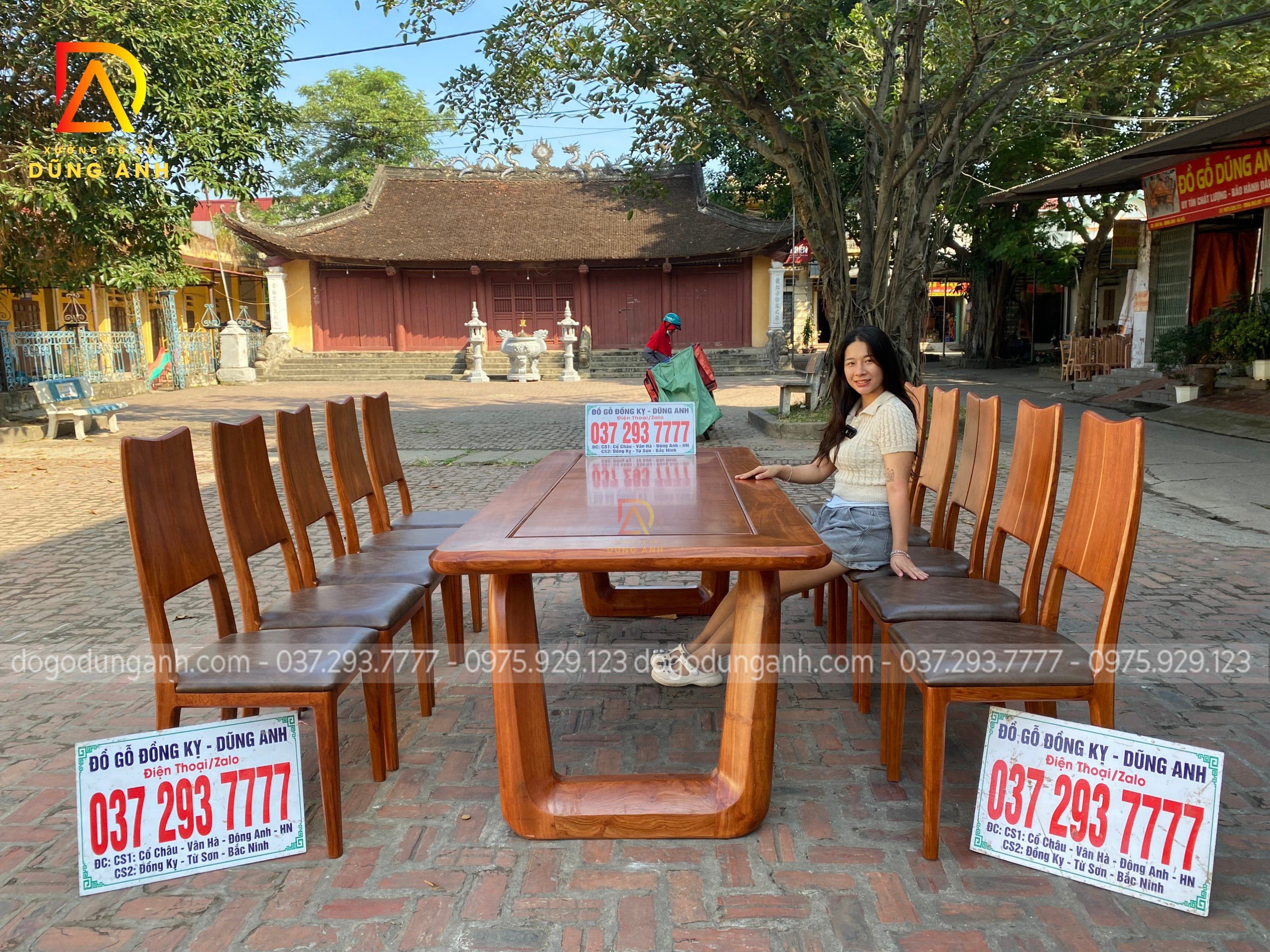 SIÊU PHẨM bàn hiện đại trụ chữ U kèm 10 ghế hiện đại – chất liệu gỗ Hương Đá