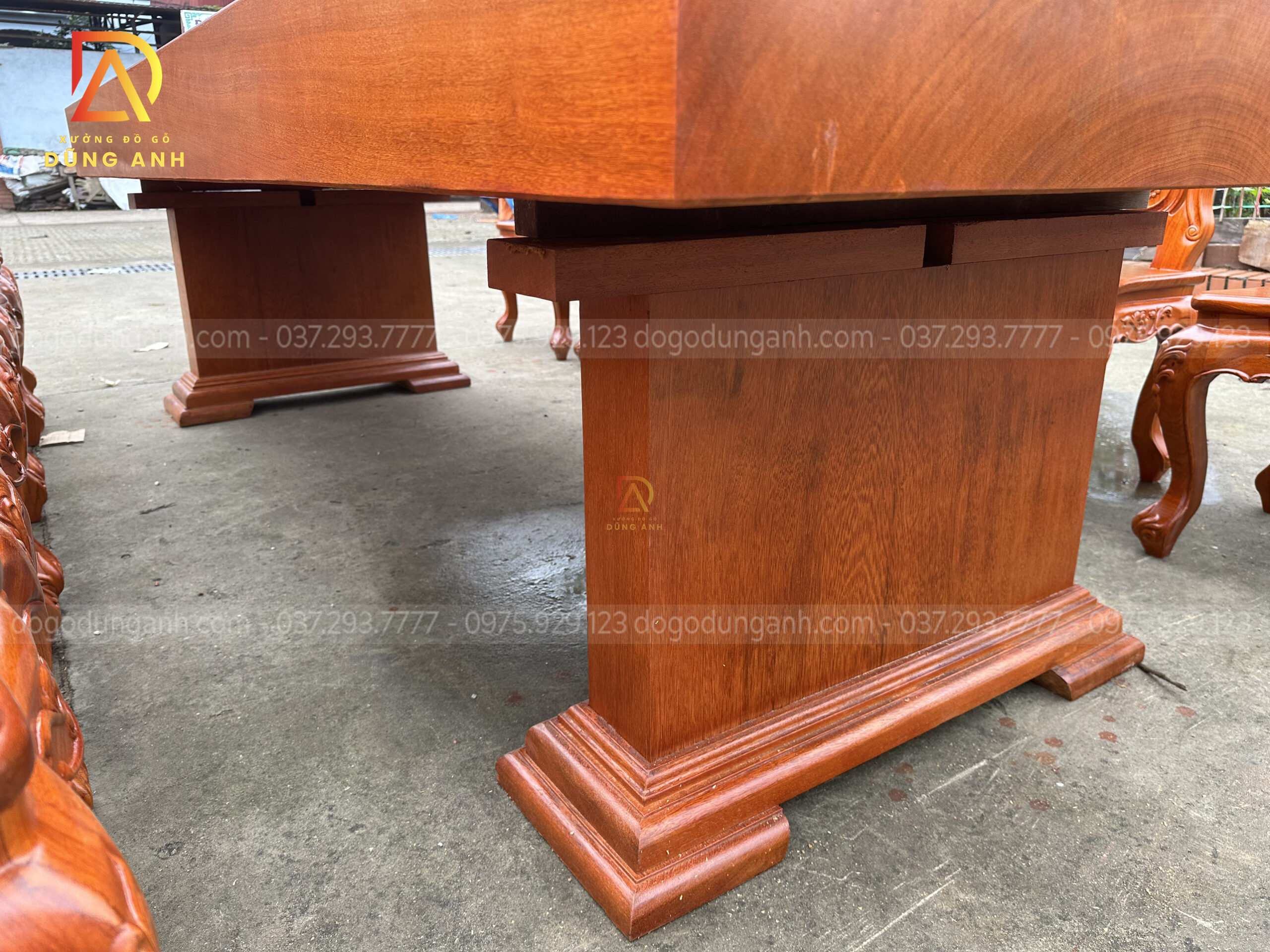 - Với chiếc bàn liền nguyên tấm chất liệu gỗ gõ đỏ nam phi SIÊU VÂN có độ dày 18 cm nói lên sự hầm hố tạo nên vẻ đẹp tự nhiên cho quý khách hàng