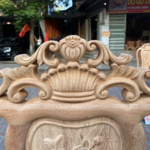 - Chương của ghế được đục theo hình hoa cúc kết hợp với vương miện giả vô cùng quý phái .