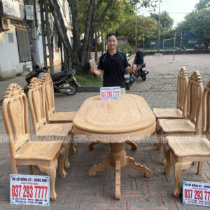 SIÊU PHẨM BỘ 6 GHẾ BÔNG CÚC KẾT HỢP BÀN BẦU DỤC