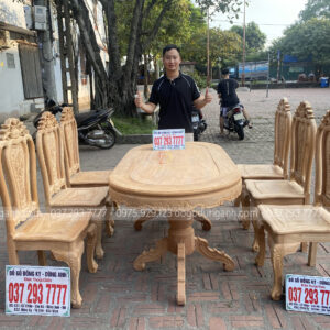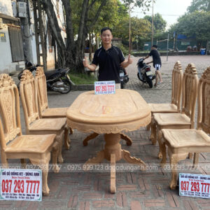 SIÊU PHẨM bộ 6 ghế bông cúc kết hợp bàn bầu dục :