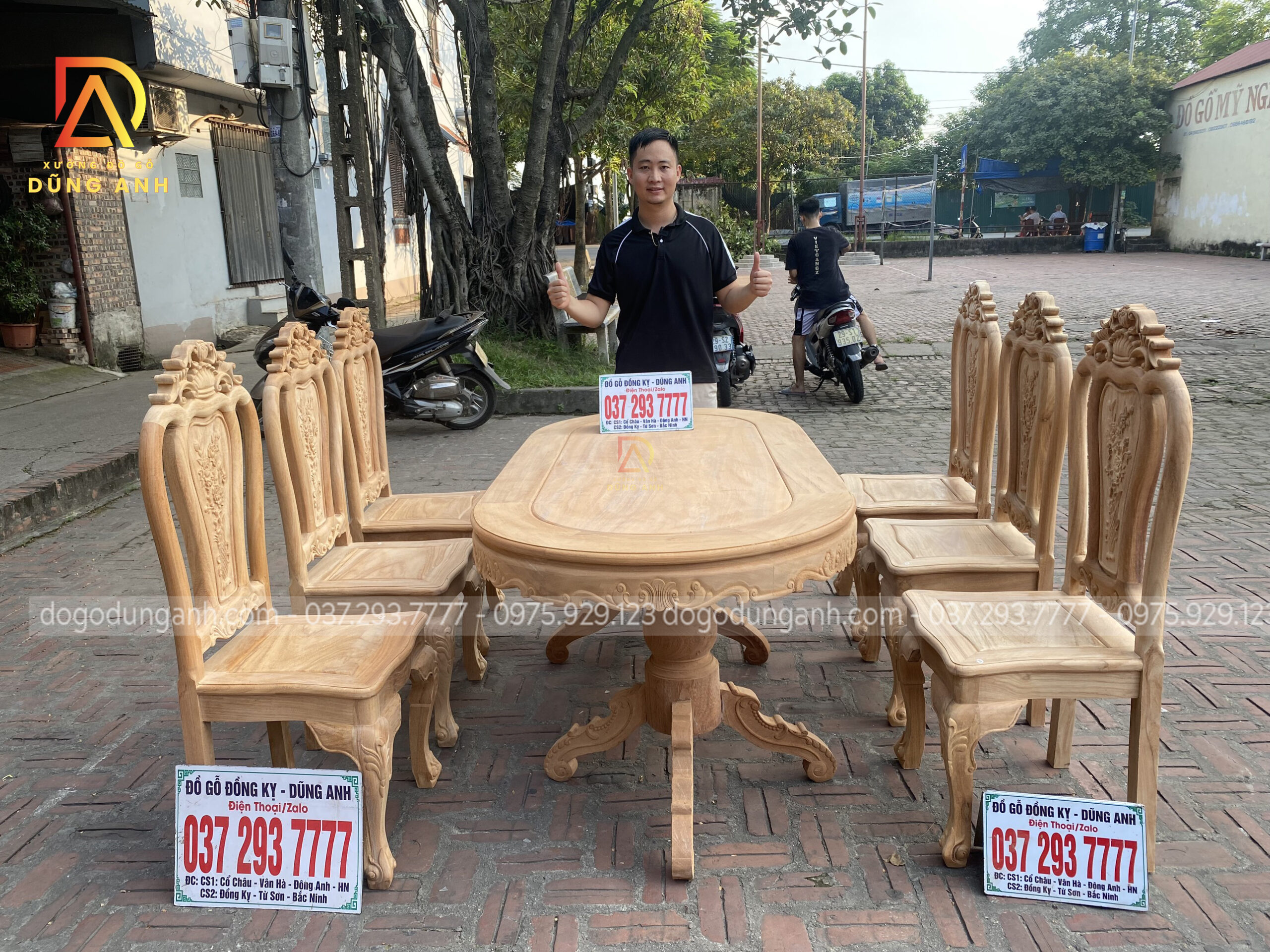 Quý khách có thể tham khảo thêm các mẫu bàn ghế ăn đẹp, bàn ghế ăn nguyên khối, các mẫu ghế ăn đẹp thì có thể liên hệ ngay với Xưởng đồ gỗ Dũng Anh qua: