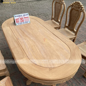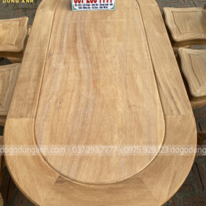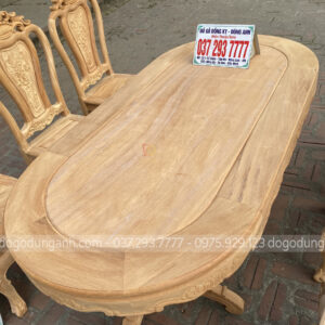 - Trên đây là chiếc bàn hình BẦU DỤC với kính thước bản rộng 90cm dài 180cm , trên hết chính là miếng ván bàn NGUYÊN KHỐI vô cùng chắc chán , quá là hợp lí để dùng trong bữa cơm xum họp gia đình.