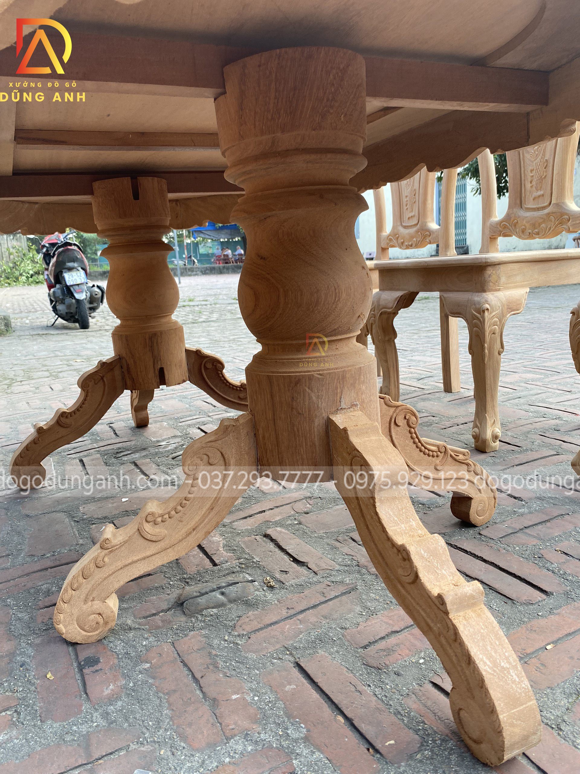 - Hơn hết 2 chiếc chân trụ này còn được kết nối với nhau qua 2 cái xà được đặt ở 2 cái lỗ mọng vô cùng to và chắc chắn đã được Xưởng đồ gỗ Dũng Anh bên em cam kết.