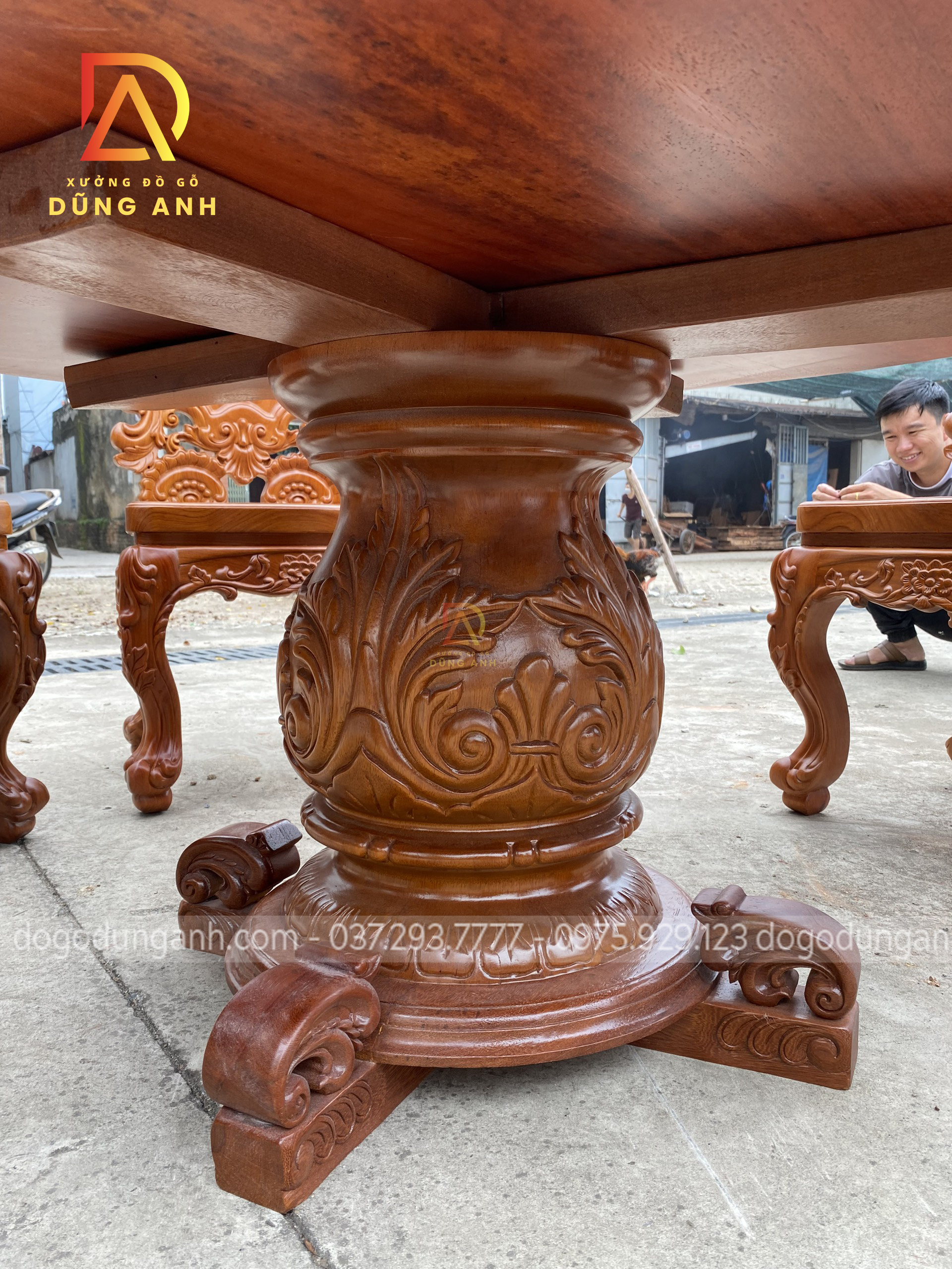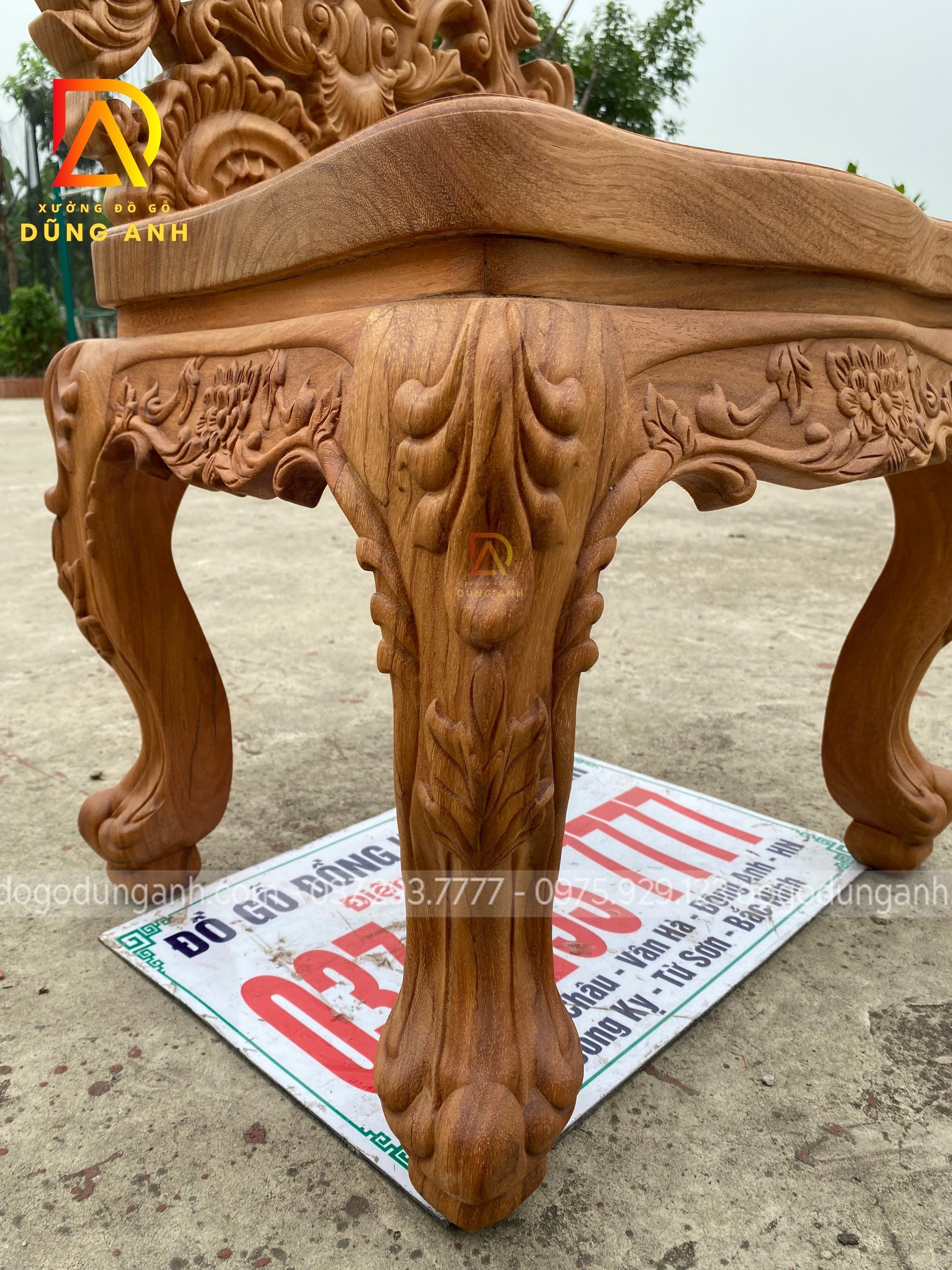 - Chân trụ còn sở hữu 4 chiếc chân chó vô cùng chắc chắn và mạnh mẽ, tuy là được đục bằng CNC nhưng mà đã được các nghệ nhân đã đục tỉa lại bằng những đôi bàn tay hàng chục năm kinh nghiệm để làm hài lòng mọi khách hàng đã tin tưởng và lựa chọn đồ của Xưởng đồ gỗ Dũng Anh
