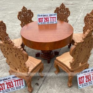 SIÊU PHẨM Bộ 6 ghế Lousi Hoàng Gia kết hợp bàn tròn NGUYÊN KHỐI chất liệu gỗ GÕ ĐỎ :
